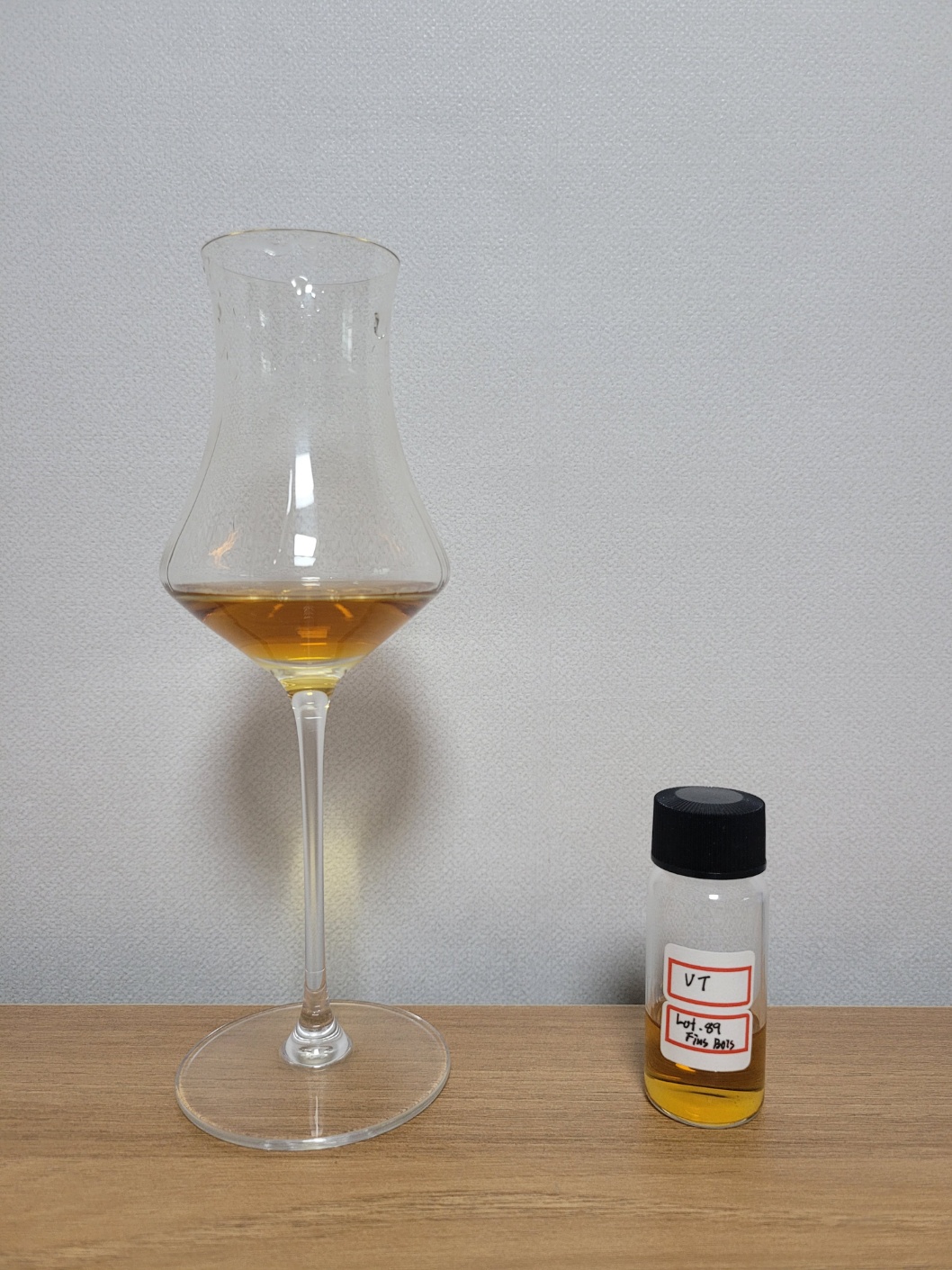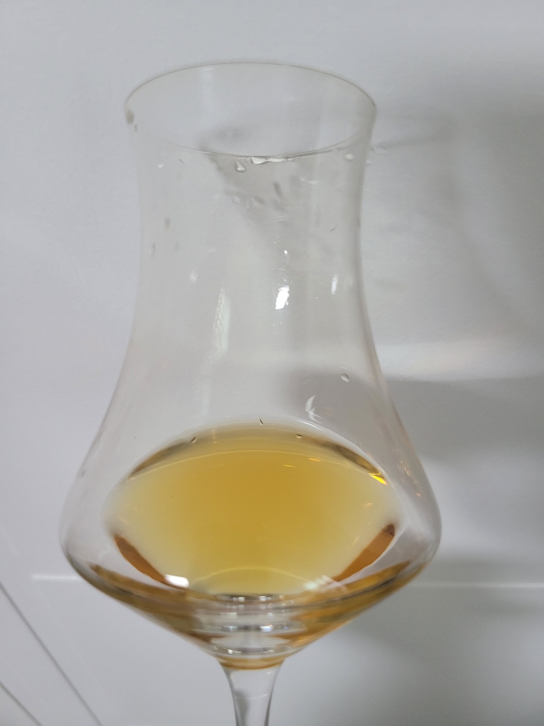 목 넘김 및 여운: 산뜻한 목 넘김이다. 펜넬 씨앗, 아니스, 삼나무, 정향, 시나몬, 생강편 따위가 비강을 가득 메운다. 가이아나의 팟 스틸 럼처럼 에스테르가 뭉처져 있는 듯하다. 물파스스러운 화한 느낌이 사라지고 나면 핵과류와 발효차 뉘앙스가 매우 은은하게 이어진다. 혀에는 단맛이 빠르게 휘발되고 가벼운 탄닌 떫은맛과 뿌리채소류의 쓴맛이 강하게 발현된다.
