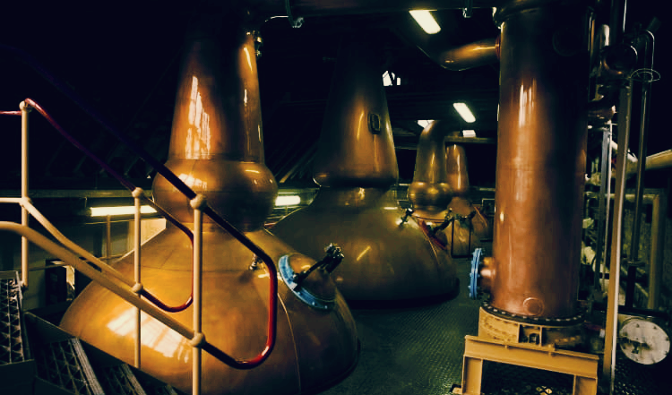 증류소 내부의 스틸룸에는 구리로 된 2쌍의 팟 스틸이 있다. 환류구(Reflux Ball)는 증류액으로 하여금 구리와의 접촉을 더욱 촉진시켜 황(Sulfur)을 제거케 하고 보다 깔끔한 특징을 부여한다. 스완넥(Swan Neck)의 경우 목이 넓으면서 짧기 때문에 무거운 향미 물질을 함유한 알코올 증기가 더 많이 상승하여 증류액에 무겁고 기름진 풍미를 더한다. 응축기(Condenser)와 이어진 라인암(Lyne Arm)은 거의 수평에 가깝다.