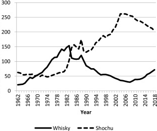 전후 일본의 위스키 시장은 저렴한 2급 위스키와 3급 위스키가 주를 이루었던 반면 1970년대에 들어서면서 경제가 성장하고 소비자들이 보다 부유해지면서 1급 위스키와 특급 위스키에 대한 요구가 증가하기 시작했다. 위스키 수입도 완전히 자유화되면서 고품질의 수많은 스카치 위스키가 시장에 풀렸다. 스카치 위스키는 몰트 원주와 그레인 원주가 혼합된 블렌디드 위스키가 대부분이었는데, 일본 위스키는 몰트 원주와 주정을 혼합한 것으로 맛에 큰 차이가 있었다.