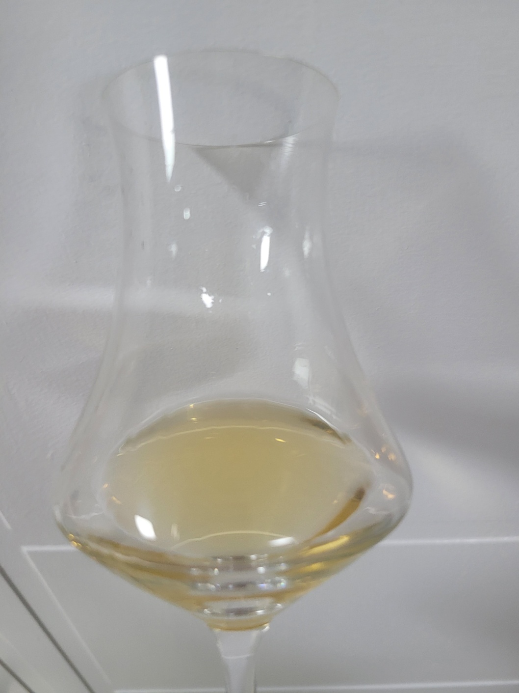 목 넘김 및 여운: 도수 대비 산뜻한 목 넘김이다. 탄 재 뉘앙스와 궐련의 스모키 그리고 짭쪼름한 해풍의 뉘앙스가 비강을 가득 메운다. 이후 하얀 꽃내음이 몽글몽글하게 피어나며 박과류와 열대과일 뉘앙스가 나타난다. 혀에는 알싸한 백후추가 자글거린 뒤에 짠맛과 감칠맛이 강하게 발현된다. 이후 오래 씹은 백미의 단맛이 느껴졌다가 툭 끊긴다. 여운은 다소 짧은 편이다.