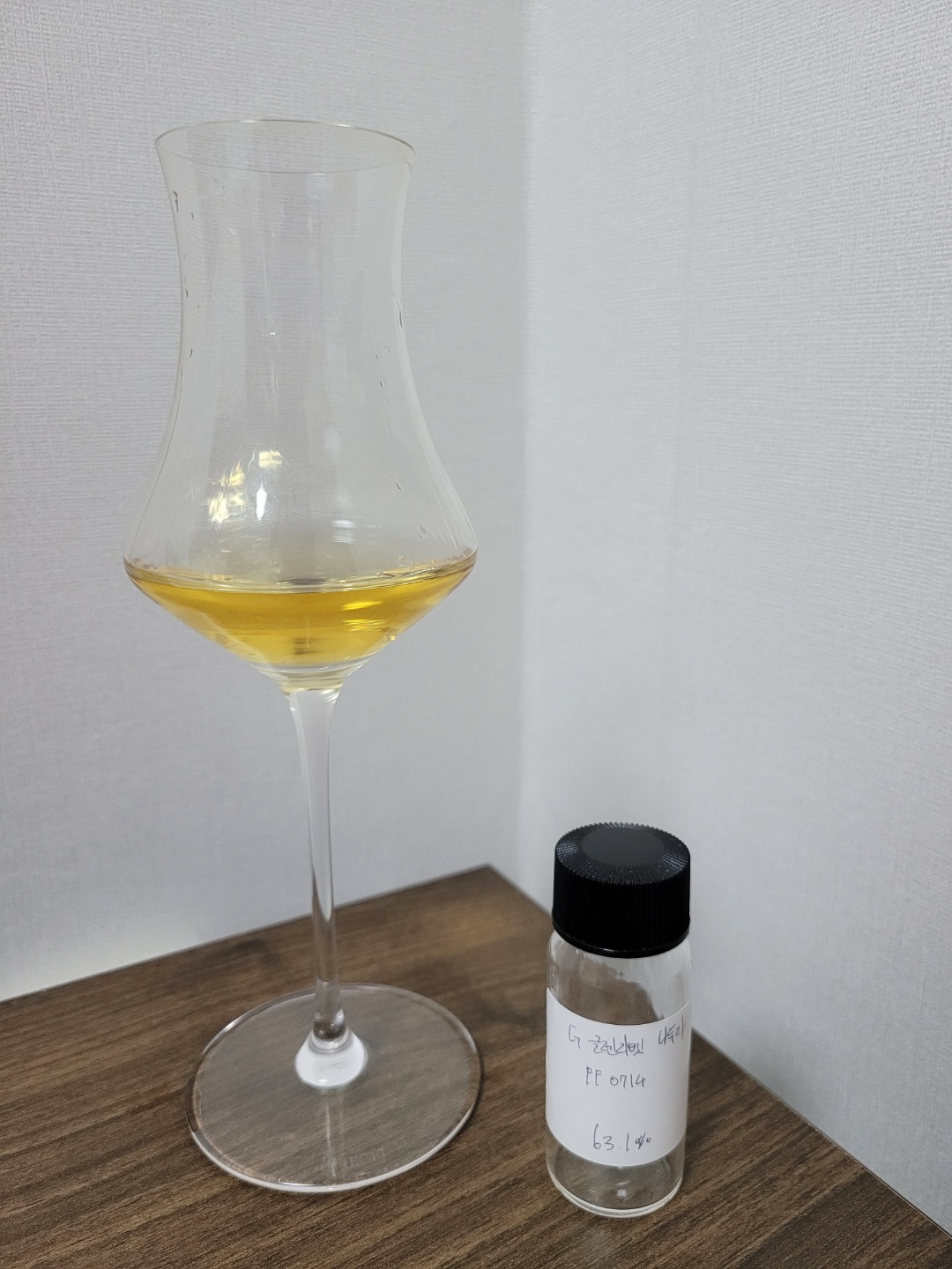 향: 강렬한 부즈와 함께 신선하지 않은 파인애플의 향과 푹 가라앉은 사과의 향이 난다. 몇일 전 블라인드로 시음해보았던 아이리쉬맨cs의 멜론 과육도 느껴진다. 불쾌할 수도 있는 과일들의 에스테르가 부즈에 가로막힌다. 약 10분의 스월링 후 레몬이나 라임의 상큼한 향을 느끼려는 찰나, 그것은 강한 아세톤에서 오는 자극이었다는 것을 깨닫는다. 공기와의 접촉이 길어질수록 청사과의 풋풋함이 강해진다.