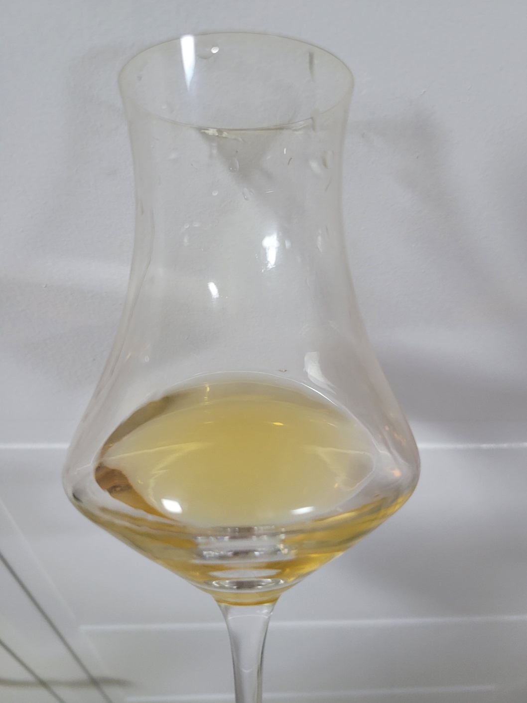 향: 숨을 크게 들이쉬어도 코가 자극되지 않을 만큼 알코올 자극이 덜하다. 껍질을 까낸 잘 익은 파인애플의 시트러스를 시작으로 리치 과즙, 파파야, 완숙한 바나나, 머스캣, 머스크멜론, 백도, 햇사과, 배 같은 신선한 과일들의 향연이 이어진다. 김치냉장고를 연 듯한 시원한 젖산 발효취와 함께 해풍에서 오는 가벼운 짠내, 플라스틱 탄내, 애플민트와 같은 멘솔 계열의 화함, 해충 구제용 소독약의 크레오졸 뉘앙스, 탄 재 뉘앙스, 화이트 초콜릿의 단내가 살랑살랑 미풍 불듯이 올라온다. 건초 같은 몰트 뉘앙스가 희미하게 잡히며 백후추, 홀스레디쉬의 알싸함이 코 끝을 간질인다.