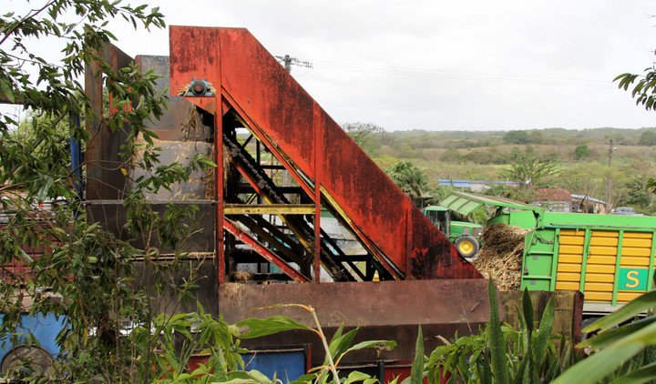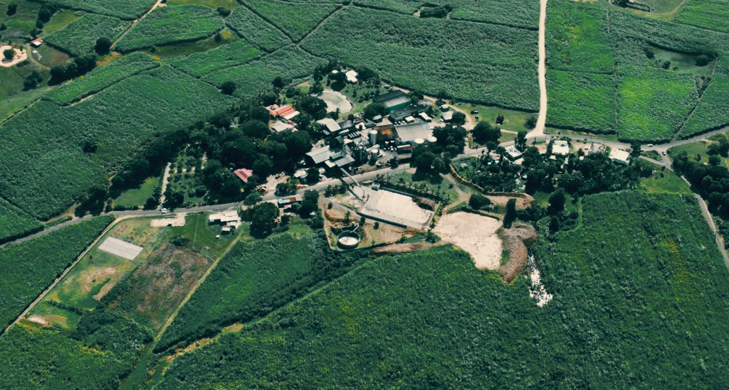 약 50cm 길이로 수확된 사탕수수는 트럭을 통해 증류소로 운송되며 무게를 측정한 뒤 굵게 썬다. 굵게 썰린 사탕수수는 다시 4개의 롤러밀에서 잘게 썰린다. 잘게 썰린 사탕수수에서 가능한 한 많은 주스를 추출하기 위해 지속적으로 농업용수를 담가서 세 번째로 압착한다. 매년 약 12,000톤의 사탕수수가 분쇄된다. 완전히 압착하고 남은 사탕수수 부산물인 바가스(Bagasse)는 증류기를 가열하거나 기타 설비의 연료로 활용된다.