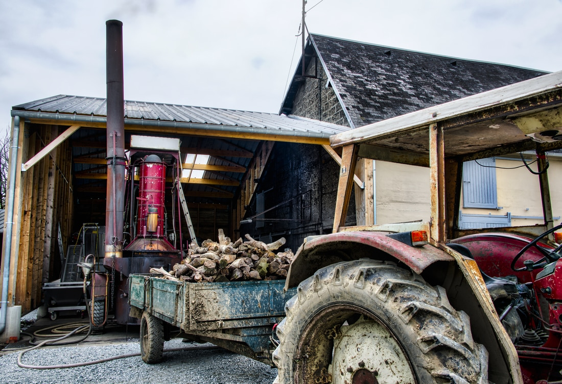 동굴 안의 배럴에서 6 ~ 10개월을 보내 발효된 시드르(Cidre)는 알코올 도수 약 6%를 함유한다. 이것을 “Le Premier Jet”라고 불리는 연속식 증류기(Alembic Armagnacais)에 단식 증류(Single Distillation) 한 뒤, "Apellation d’Origine Contrôlée Calvados"의 규정에 따라 증류액의 알코올 도수를 70%로 맞춘다.