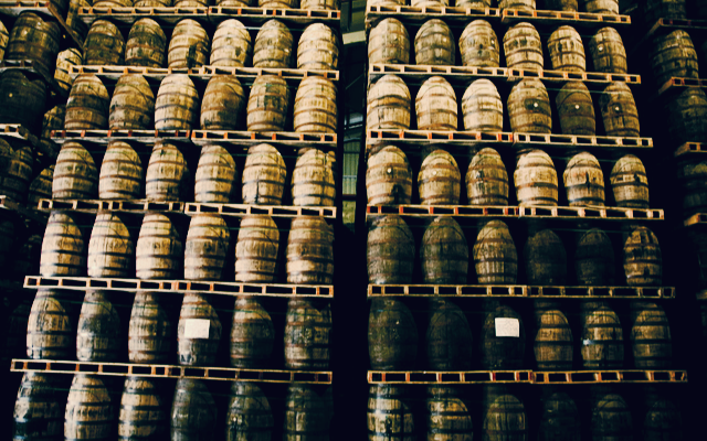 증류소로 배송된 수많은 오크통들은 증류소가 자체적으로 보유한 쿠퍼리지(Cooperage)에서 검사를 거친다. 이후 불량인 오크통은 페기 처분되며 정상적인 오크통은 야외에 노출시키지 않은 채로 1 ~ 3개월간 보관한 뒤 스피릿을 통입한다.