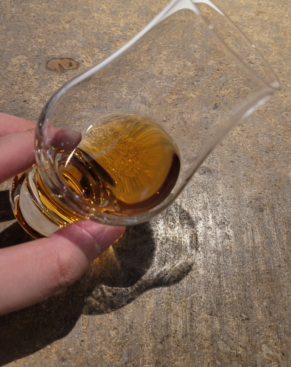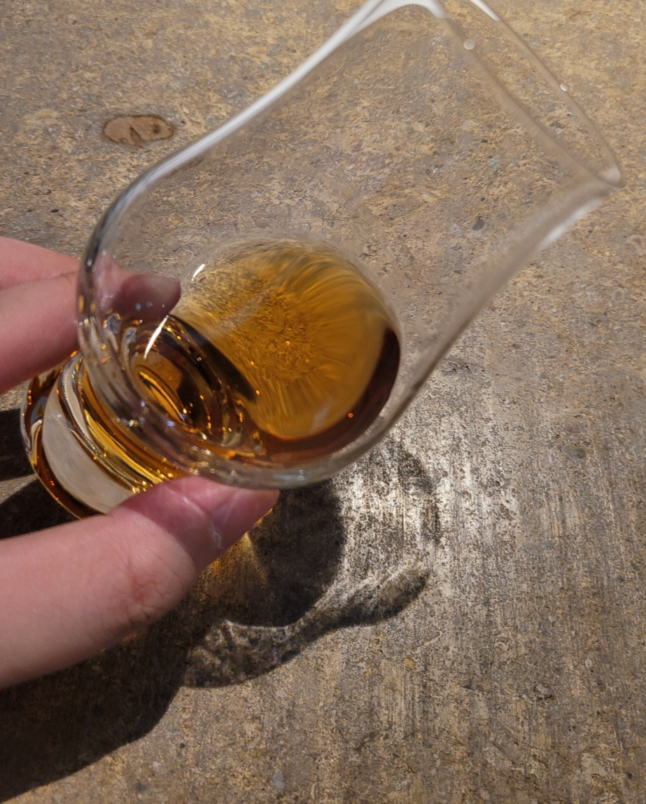 맛: 크리미한 질감에 밀도감이 촘촘하여 바디가 무척 두껍다. 도수감이 조금 더 잘 느껴지면서 캐러멜라이징을 덜 한 양파의 알싸함과 함께 곱게 간 정향, 동양감초, 시나몬 따위의 향신료가 두텁게 깔린다. 오래 머금으면 매우 산뜻한 산미와 함께 아몬드 분태가 붙은 밀크초콜릿, 머스캣, 머스크멜론, 씨 가득한 용과의 풍미가 느껴진다. 오래 머금어도 숙성년수 대비 꺼끌꺼끌하지 않은 얇은 탄닌감이 상당히 매력적이다. 균형감이 좋은 편이다.