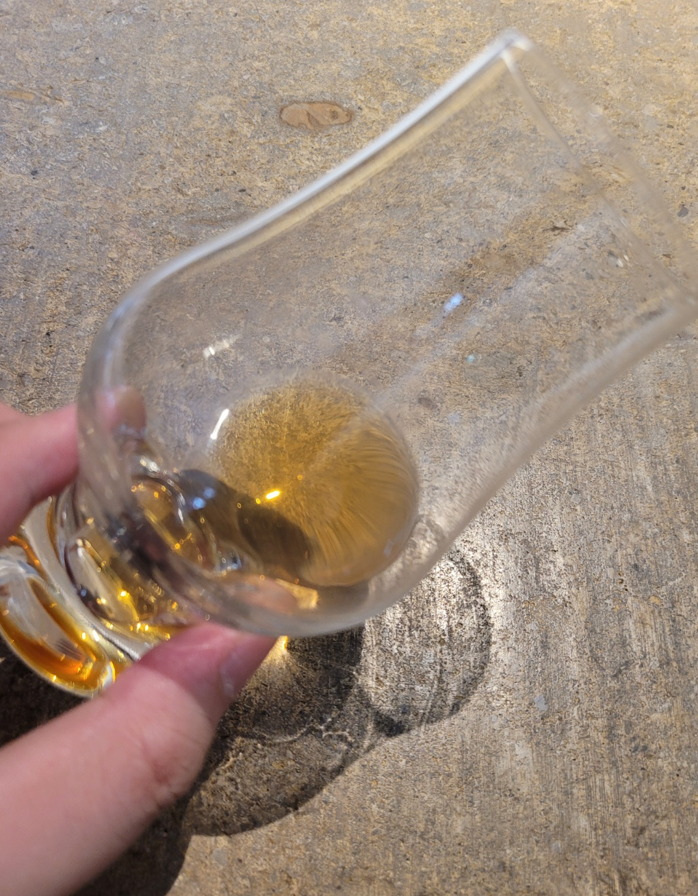 목 넘김 및 여운: 도수감이 있다보니 목 넘김이 꽤나 자극적인 편이다. 오크와 화독내로 비강이 가득 메워졌다가 민트의 멘솔 뉘앙스가 스멀스멀 올라온다. 정향과 흑후추가 즐비하다. 오래 발효시킨 매실청, 다크초콜릿, 블랙체리, 대추야자, 럼레이즌, 흑당, 담뱃잎 따위가 짙고 길게 이어진다. 혀에는 두터운 오크터치에서 오는 탄닌 떫은맛이 지배적이다. 단맛은 절제되어 있으며 은은한 산미와 코코아파우더의 분말감이 남는다. 무척 드라이하다.
