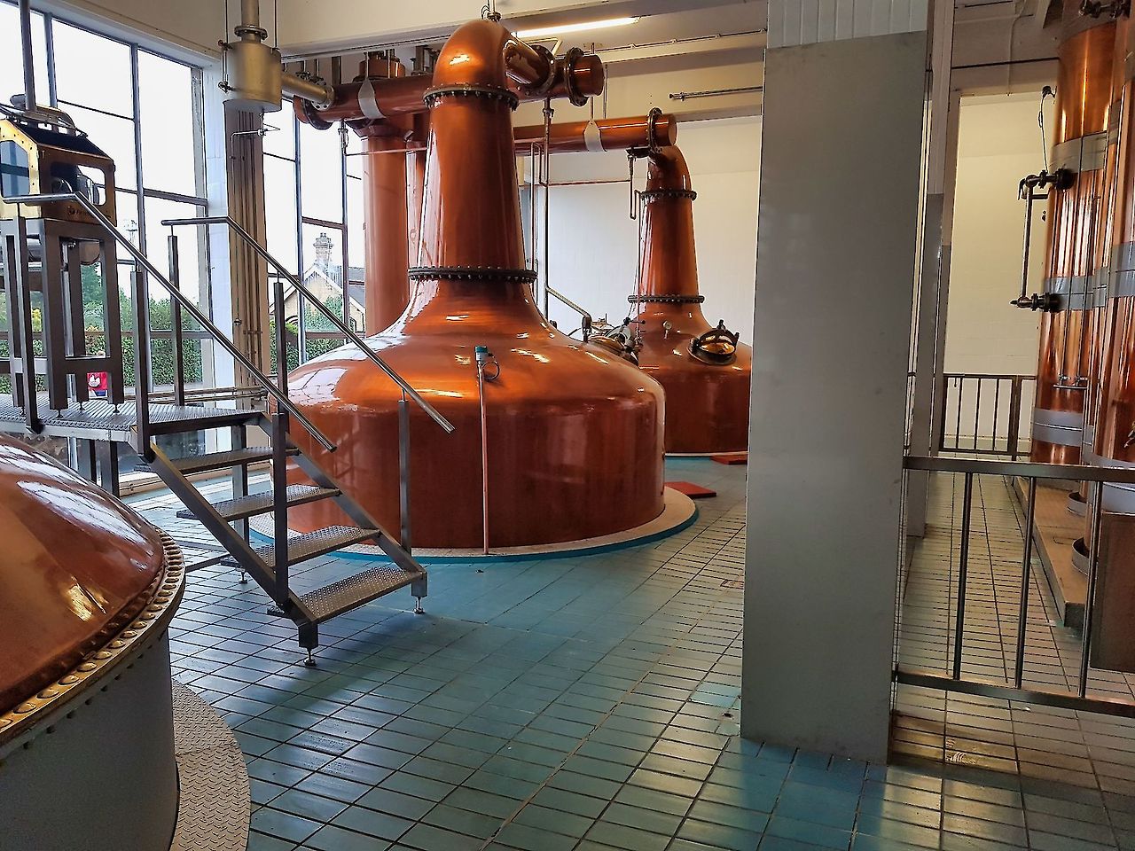 몰트 위스키 증류소 내부의 스틸룸에는 구리로 이루어진 3개의 증류기가 있다. 환류구(Reflux Ball)가 없으며 스완넥(Swan Neck)은 짧고 좁은 형태로 이루어져 있다. 응축기(Condenser)와 이어진 라인암(Lyne Arm)은 완만한 상승형을 띠며 중간에 디플레그메이터(Dephlegmator)라는 환류관 시스템이 장착되어 있다. 덕분에 보다 깨끗하고 순수한 스피릿을 생산케 한다. 이중 증류와 삼중 증류 모두 수행한다. 연간 약 500만 리터의 순수 알코올을 생산한다.