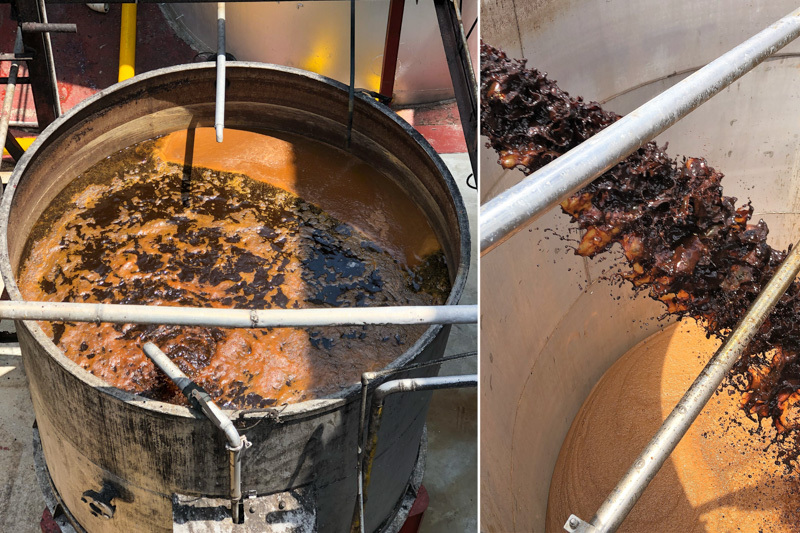 가이아나에서 생산되는 당밀 안에는 재, 석회석, 미네랄 등이 너무 많기 때문에 어떠한 처리 과정을 거치는데, 처리 후에도 이 고형물이 금속 플레이트(Metal Plates)에 바위처럼 단단하게 남는다. 때문에 각 판을 제거하고 고형물을 모두 제거한 다음 다시 플레이트를 넣는 일련의 청소 과정을 필요로 한다.