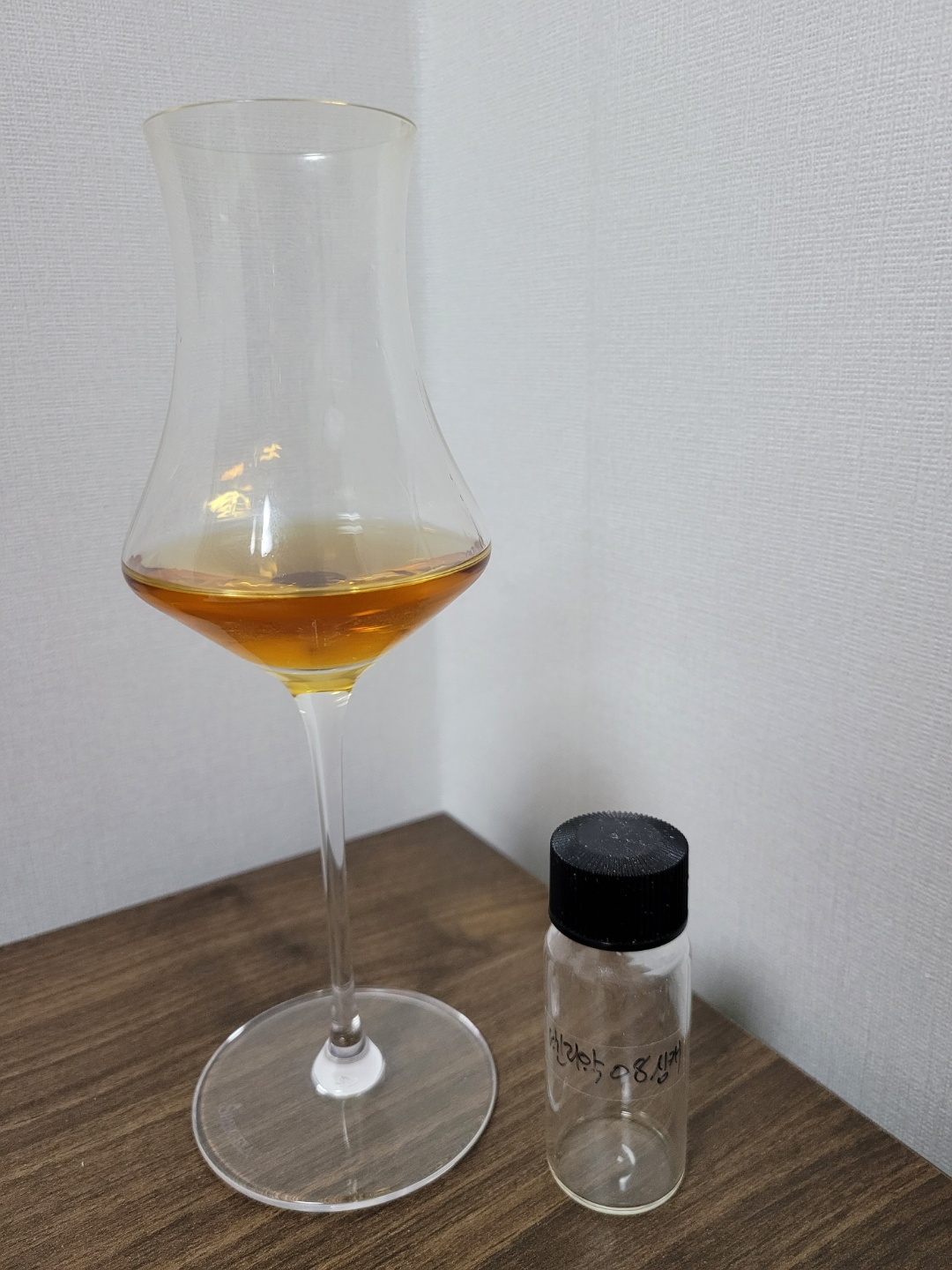 목 넘김 및 여운: 아세톤 때문에 상당히 매우면서도 알싸하다. 저항감이 심한 편이다. 목에 넘기고 난 후에는 강한 피트의 풍미 뒤로 셰리 캐스크의 탄닌 떫은맛이 남는다. 오크통을 이상하게 빨았는지, 피트와 오크통 그리고 탄닌이 결합되어 쓴 맛이 길게 남는다. 10초 정도 후에야 이 떫고도 쓴 맛이 휘발되며, 적포도의 은은한 달콤함이 남는다.