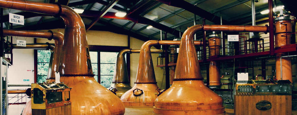 증류소 내부의 스틸룸에는 구리로 이루어진 3쌍의 팟 스틸이 있다. 워시 스틸과 스피릿 스틸 모두 위로 올라갈수록 목이 좁아지는 양파 모양을 띠며 환류구(Reflux Ball)가 없다. 응축기(Condenser)와 연결된 라인암(Lyne Arm)은 워시 스틸의 경우 완만한 상향식, 스피릿 스틸의 경우 완만한 하향식으로 이루어져 있다. 여기에 더해 증류 시간을 조절하여 허브, 과일, 견과류, 향신료 등 다양한 향미를 증류액에 부여할 수 있다.