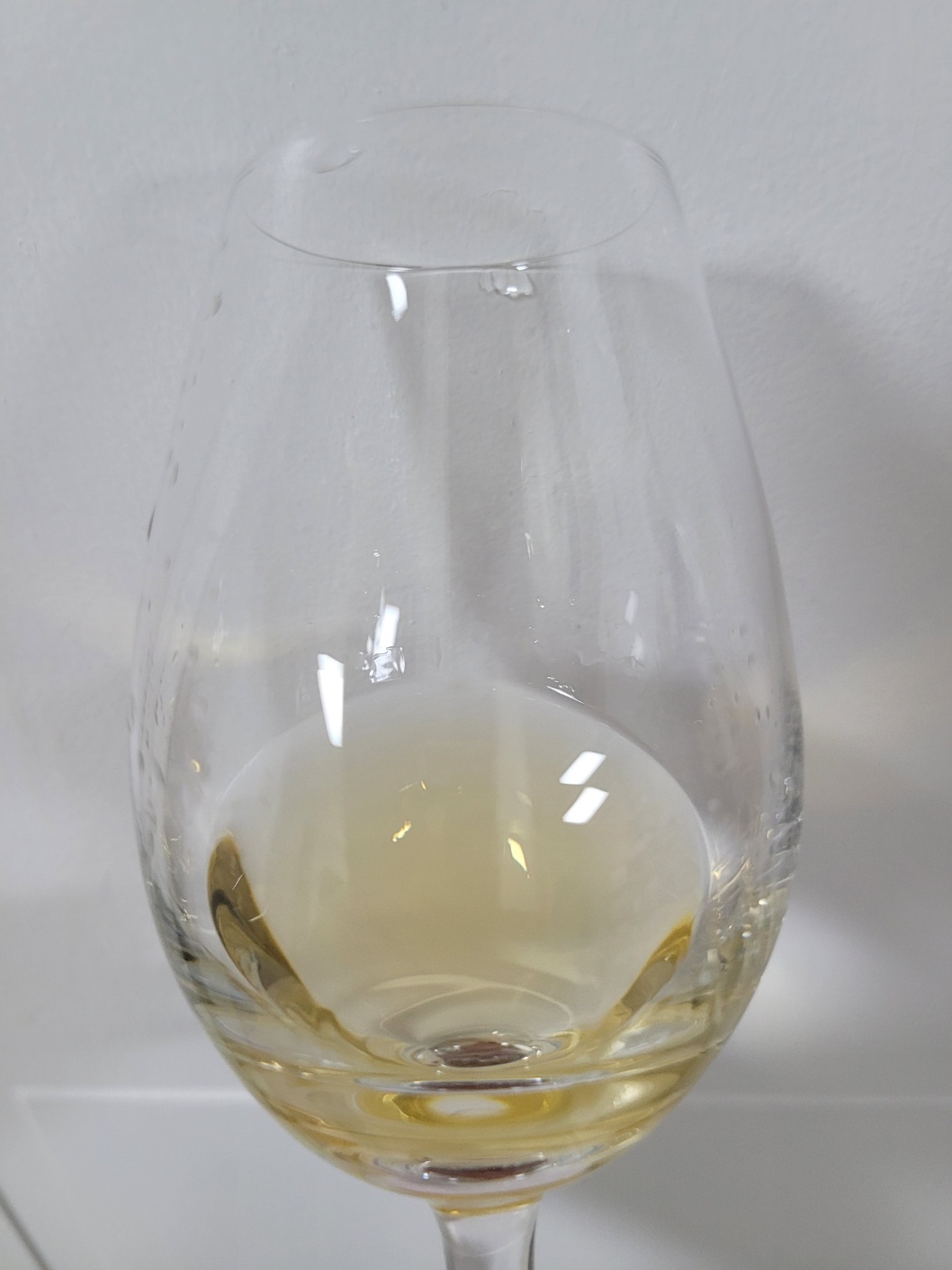 향: 다소 날선 알코올 램프에 가까운 에탄올 뉘앙스가 올라오며 매우 치댄다. 하얀 도화지스러운 몰트 뉘앙스를 중심으로 달지 않은 부분의 참외 과육, 상온에 방치한 오이 슬라이스, 데친 양배추, 물에 불린 라이스 페이퍼, 채수, 심플 시럽, 후숙이 덜 된 노란 멜론 과육 등이 올라오면서 그라빠의 캐릭터가 온전히 살아있음을 느낀다. 백후추와 아니스 따위가 훑고 지나가면 갓 지은 쌀밥의 단내, 티트리 오일, 톡 쏘는 소다, 바닐라, 코코넛 워터, 대파의 하얀 부분, 피클링 스파이스가 은은하게 잡힌다. 전체적으로 알코올이 향조의 볼륨을 가뿐히 넘어서면서 불편한 느낌이 강하다. 또한 단순하면서도 직관적인 캐릭터를 가지고 있다.
