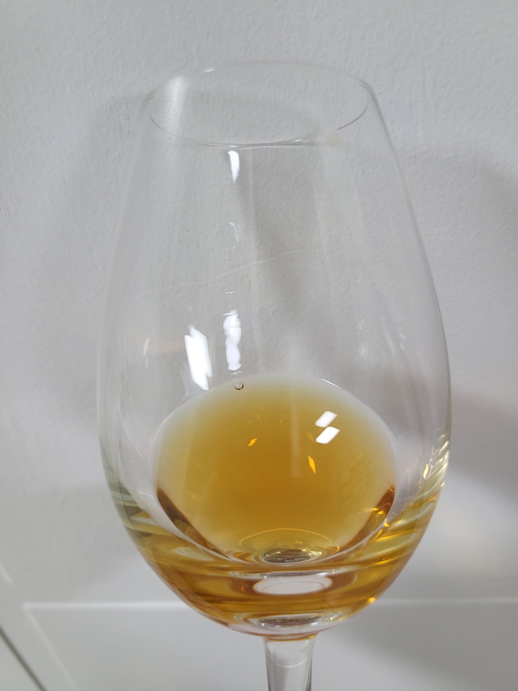 맛: 크리미한 질감에 중간 정도의 바디감이다. 높은 알코올 도수 대비 알코올이 불편하게 이리저리 치대지는 않는다. 혀에 오크의 탄닌감이 엷게 코팅된 후 오렌지 및 감귤 과육과 동시에 수반되는 귤락의 씁쓸함, 건살구, 캐러멜, 라즈베리맛 감기 시럽, 백후추, 육두구, 시나몬, 사과 콤포트의 풍미가 느껴진다. 오래 머금으면 조금씩 가수 되면서 새콤한 산미와 향신료 뉘앙스가 더욱 강해지고, 얼그레이 홍차와 루이보스 오렌지티를 머금고 있는 듯한 느낌이 오래 지속된다. 도수 대비 균형감이 상당히 좋지만 풍미의 강도 자체가 약해서 심심한 면이 있다.