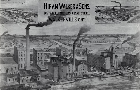 1858년, "Hiram Walker & Sons"가 설립되어 증류소를 비롯해 맥아 저장고, 병입 공장, 목재 창고를 건설했다. 특히 증류소에서는 디트로이트에서 했던 것과 동일한 공정이 알코올을 증류하는 데 사용되었으며, 그가 "Walker's Club Whisky"라는 라벨을 유리병에 붙이는 독창적인 마케팅을 진행하면서 그의 위스키는 사교계에서 가장 인기 있는 술이 되었다. "Three Star Club" 브랜드의 성공으로 증류소는 지속적으로 확장되었으며, 황무지에 가까웠던 주변 땅이 중심지가 되어 "Walkerville"이라 불리기 시작했고, 이후 온타리오주에서 마을의 지위를 얻는다. 하이람 워커의 증류소도 마을 이름을 따 "Walkerville Distillery"라고