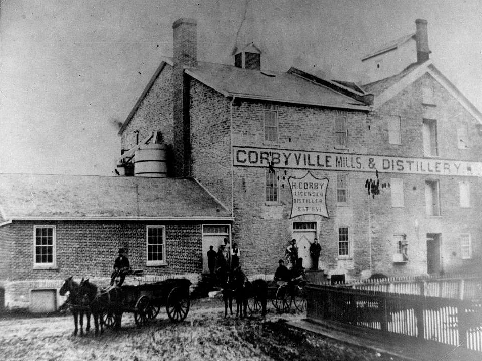 1838년, 그의 아내와 세 자녀가 썰매를 타던 도중 물에 빠져 익사하자 실의에 빠진 그는 점포를 모두 매각하고 증기선을 구입하여 벨빌(Belleville)과 킹스턴(Kingston) 사이를 잇는 곡물 및 상품 운송업에 종사했다. 1842년, 고향으로 돌아온 그는 아내의 자매인 마틸다와 결혼한 뒤 정착하여 수년간 정치인으로 활동했다. 1855년, 그는 새로운 사업을 위해 벨빌 북쪽에 위치한 곡물 제분소를 매입하여 밀가루를 생산했으며, 1859년에는 밀가루 생산 과정에서 남는 밀을 효율적으로 활용하기 위해 "Corbyville Distillery"를 설립했다. 당시 위스키에 대한 지역적인 수요가 어느 정도 있었지만, 비교적 연간 생산량이 무척 낮았기 때문에 거대한 증류업체들과는 경쟁이 되지 못했다.