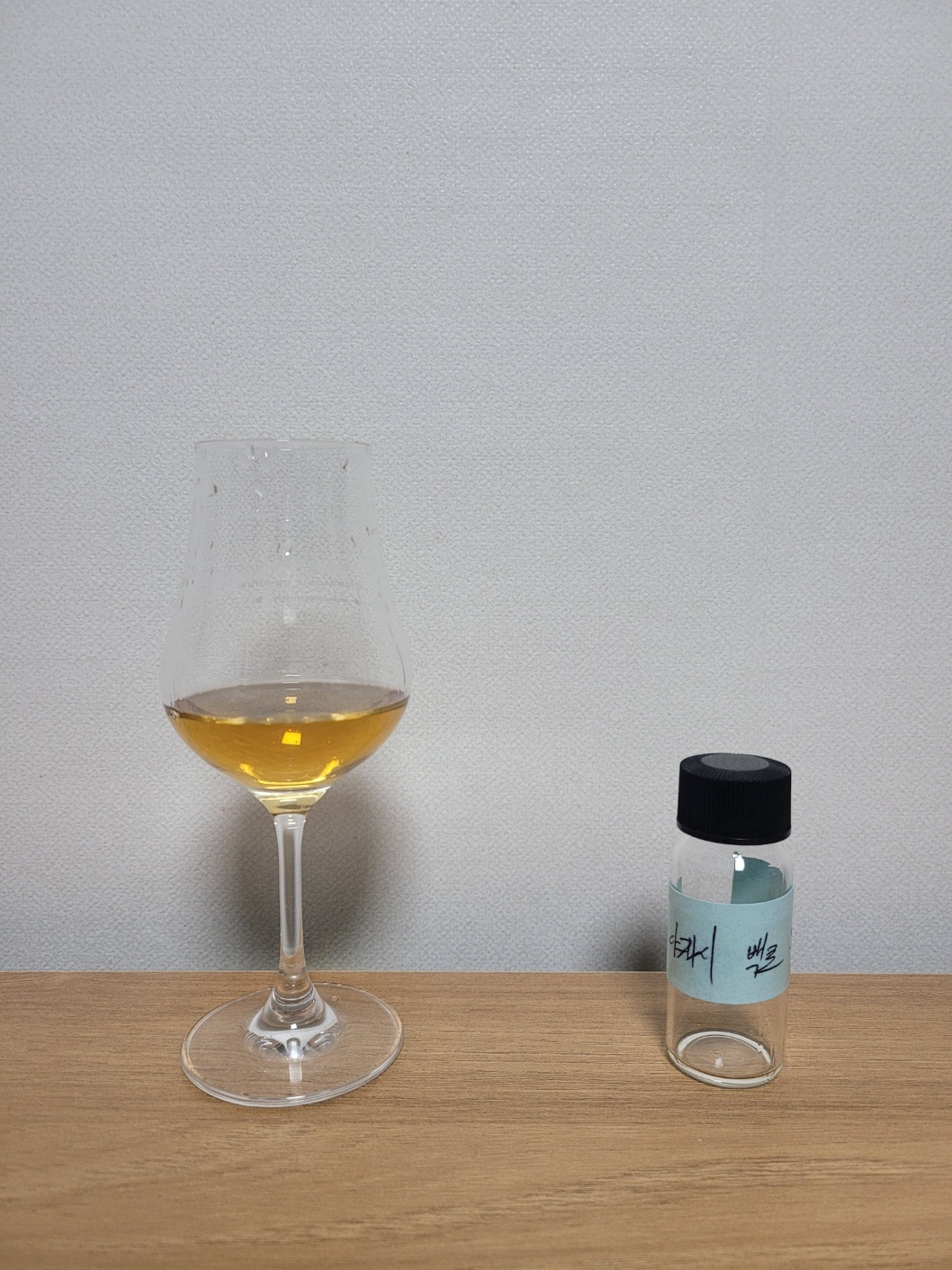 향: 알코올 튐이 전혀 없으며 매우 젠틀하다. 구수한 보리차가 지배적인데, 이러한 향이 지배적인 만큼 몰트에서 기인하는 약간의 건초 뉘앙스와 쩐내가 살짝 잡힌다. 손의 기름에 반응하는 구리 동전 냄새를 시작으로 짜낸 지 오래된 들기름, 파래를 뿌린 전병과자(센베), 오란다, 김부각, 약과, 땅콩샌드, 페이스트리, 염장 다시마의 향이 올라온다.