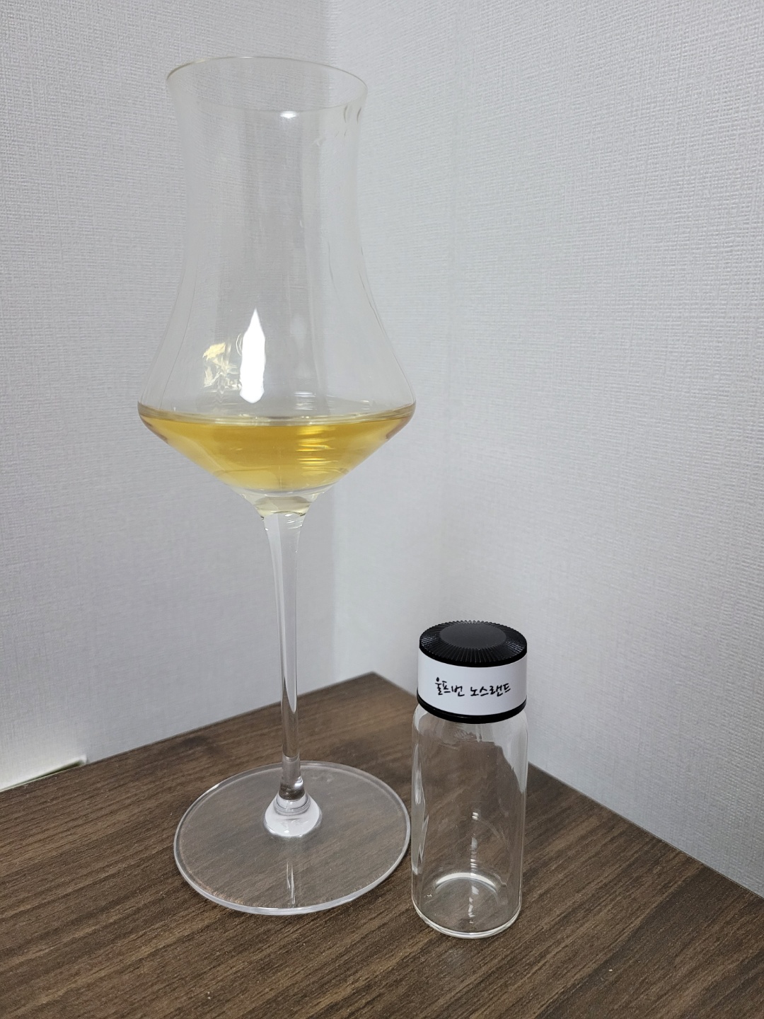 향: 코가 잠깐 마비될 정도의 부즈와 함께 레몬, 라임, 파인애플 등의 새콤함이 강하게 다가온다. 3년 내외의 저숙성임에도 몰트의 개성이 잘 느껴지지 않지만, 스모키함이 원액에 어느 정도 배어있다. 스월링을 하다 보면, 일반적인 버번 캐스크의 상쾌한 청사과와 약간의 바닐라 향이 올라온다. 아메리칸 오크를 쿼터 캐스크로 재조립해서 단기간에 숙성시킨 만큼 향이 복잡하지 않고 직관적으로 다가온다.