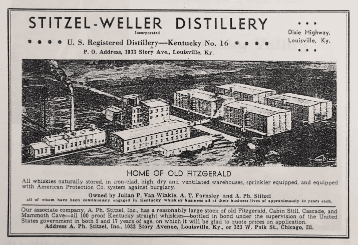 1933년, 금주법이 폐지되자 두 회사는 합병을 진행하여 "Stitzel-Weller Distilling Co."가 되었으며 2년 뒤에는 켄터키 쉬블리(Shivley)에 "Stitzel-Weller Distillery"를 설립하면서 더 거대한 증류 사업체로 발돋움했다. 새롭게 완공된 증류소는 2년 전에 프랭크포트 서쪽에 위치한 "Old Fitzgerald Distillery"로부터 인수한 브랜드 이름을 따서 "Old Fitzgerald Distillery"로도 알려지게 된다. 이전의 "A. Ph. Stitzel Distillery"는 포 로지스(Four Roses) 브랜드로 유명한 "Frankfort Distilling Co."에 매각되면서 이후 "Joseph E. Seagrams & Sons" 산하의 한 증류 시설로 운용된다.