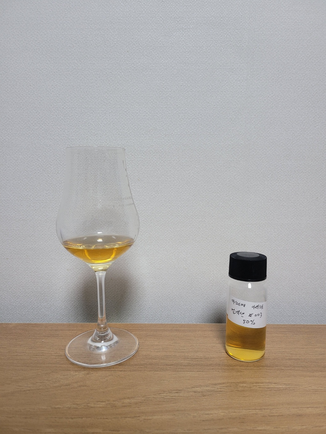 목 넘김 및 여운: 살짝 자극적인 목 넘김이다. 알코올이 가볍게 터진 뒤 사양꿀과 경질치즈의 꼬릿한 느낌이 비강을 잠시 메웠다가 빠르게 사라지고 과숙된 배, 양념을 씻어낸 묵은지의 쿰쿰함, 누룩취 그리고 약간의 암모니아 뉘앙스가 은은하게 이어진다. 혀에는 희석한 사과식초 같은 시큼함이 빠르게 훑고 지나가고 곡물의 단맛과 견과류의 연한 껍질에서 오는 풋맛 그리고 고기육수의 감칠맛이 사뿐히 내려앉는다.