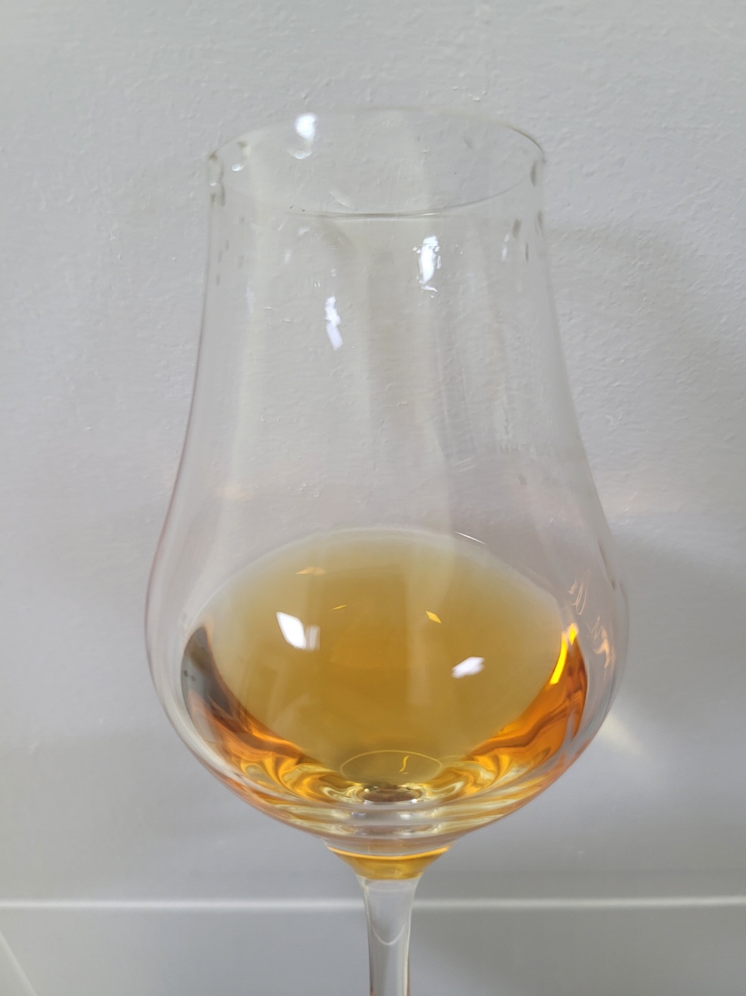 목 넘김 및 여운: 상당히 자극적인 목 넘김이다. 알코올이 크게 터진 뒤 궐련에서 오는 살짝 매캐함과 길게 우려낸 랍상소총의 훈연향 그리고 하얀 꽃내음이 비강을 빈틈없이 메운다. 이후 코코넛 오일, 편백나무, 자일리톨, 껌, 솜사탕, 마른 허브, 유칼립투스 향이 가늘고 길게 이어진다. 혀에는 말린 코코넛칩, 바닐라 아이스크림, 찰보리빵, 보이차 그리고 표고버섯 육수의 감칠맛이 진득하게 내려앉아 오래 지속된다.