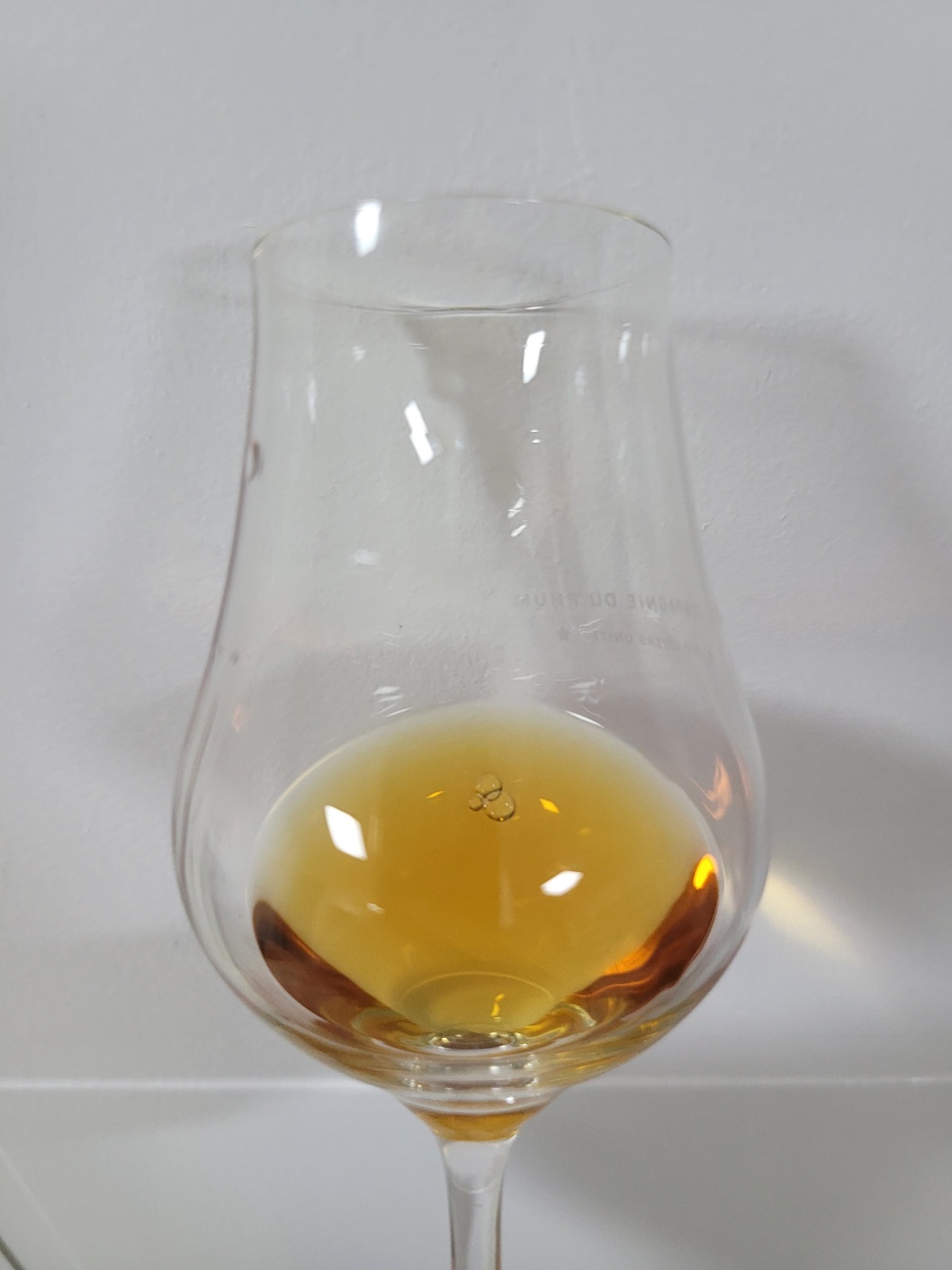 목 넘김 및 여운: 살짝 자극적인 목 넘김이다. 알코올이 잔잔하고 지속적으로 터지며 오렌지, 자몽, 마라스키노 체리 향이 비강을 가득 메운다. 이후 세무가죽, 시나몬 파우더, 육두구, 아니스, 누가, 밀크 캐러멜, 패랭이꽃, 구운 헤이즐넛 따위가 가늘고 길게 이어진다. 혀에는 높은 알코올로 인한 찌릿함이 가신 뒤 갓 볶아낸 땅콩의 은은한 산미와 고소함, 밀크 캐러멜의 단맛만이 남아 매우 깔끔하게 떨어진다.