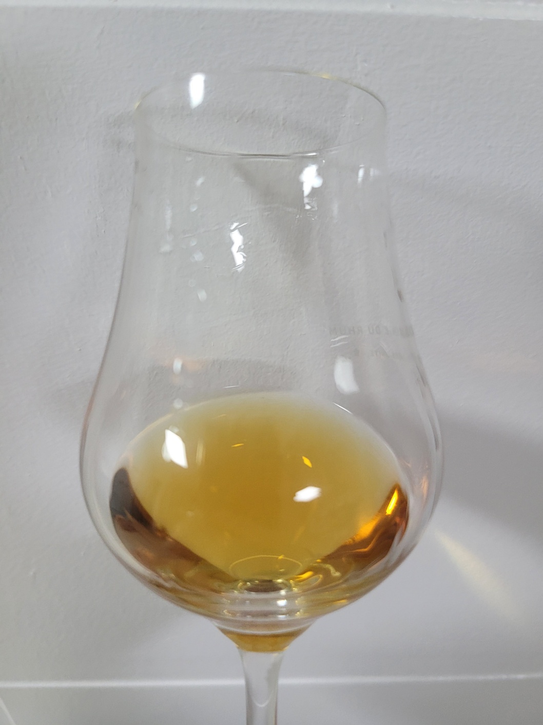 목 넘김 및 여운: 살짝 자극적인 목 넘김이다. 알코올과 함께 자몽이나 금귤의 시트러스가 터진다. 이후 강황가루, 육두구, 시나몬 파우더, 사과나무칩 훈연향, 복숭아 콤포트, 견과류 껍질 풋내, 살구 따위가 가늘고 길게 이어진다. 혀에는 떫떠름한 감, 귤락, 자몽, 마른 허브 럽드 그리고 거칠거칠한 탄닌감이 난동을 부리다가 빠르게 가라앉고 사라진다.