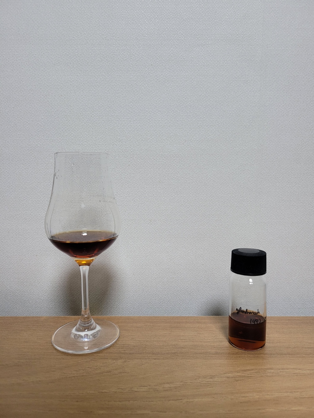 목 넘김 및 여운: 살짝 자극적인 목 넘김이다. 다크 초콜릿과 가죽 그리고 장향이 비강을 가득 메운다. 이후 블랙체리, 말린 정향, 헤이즐넛, 크레파스의 향이 굵고 짧게 이어진다. 혀에는 다크 초콜릿의 씁쓸함, 말린 대추야자의 달콤함, 간장의 감칠맛, 적포도 껍질, 말린 정향, 흑후추가 서로 어우러지면서 빠르게 마무리된다.
