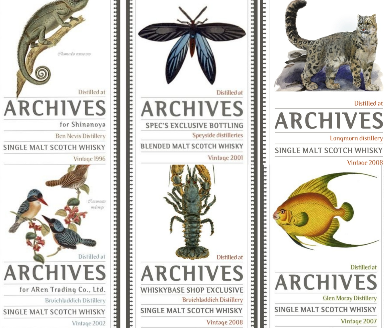 "Archives" 레이블은 전 세계 여러 시장에 출시되며, 각 시장마다 고유의 생물 디자인이 적용된다. 미국은 나비, 일본은 파충류, 대만과 홍콩 그리고 중국과 같은 시장에는 아시아 기반의 조류 종을 특징으로 한다. 병입 수량이 적거나 다른 이유로 수입 파트너에게 적합하지 않은 일부 릴리즈의 경우 언원티드 크리쳐스(Unwanted Creatures)라는 레이블을 통해 "Whiskybase Shop"에서 독점 판매된다.