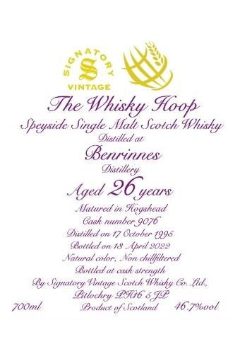 Benrinnes 1995 26 Years Single Cask #9076 Signatory Vintage & The Whisky Hoop