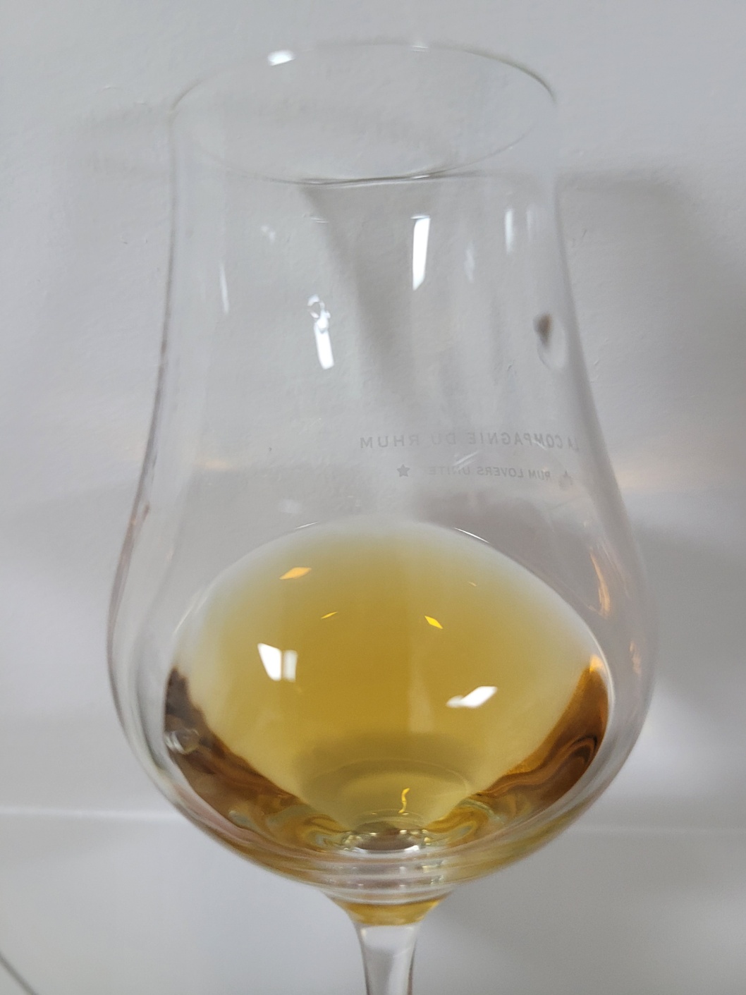 향: 알코올이 가볍게 치대며 참나무 숯향과 고무 그을린 냄새 그리고 까맣게 탄 재와 같은 매캐함이 느껴진다. 타임 또는 로즈마리로 가볍게 마리네이드한 햄과 랍상소총의 훈연향이 무척 노골적이며 황내음이 절제되어 있다. 세월에 해진 가죽소파, 말린 정향, 팔각, 지점토, 말린 월계수잎, 반건조 무화과, 호두정과, 약간의 건초 풋내, 비정제 설탕 따위가 연상된다.
