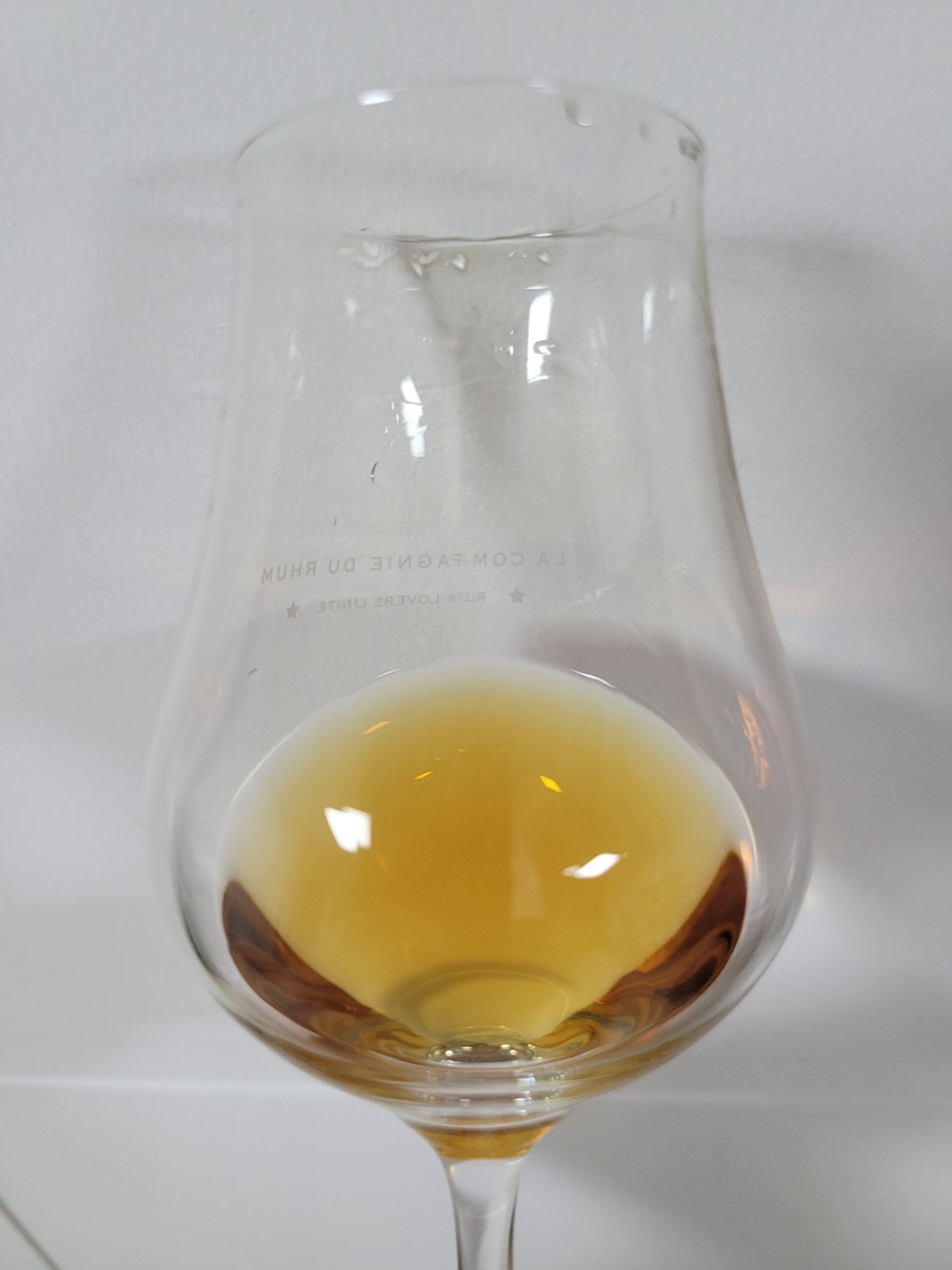 색: 갈색을 띠며 레그는 잔 중간에 맺혀 매우 천천히 떨어진다.