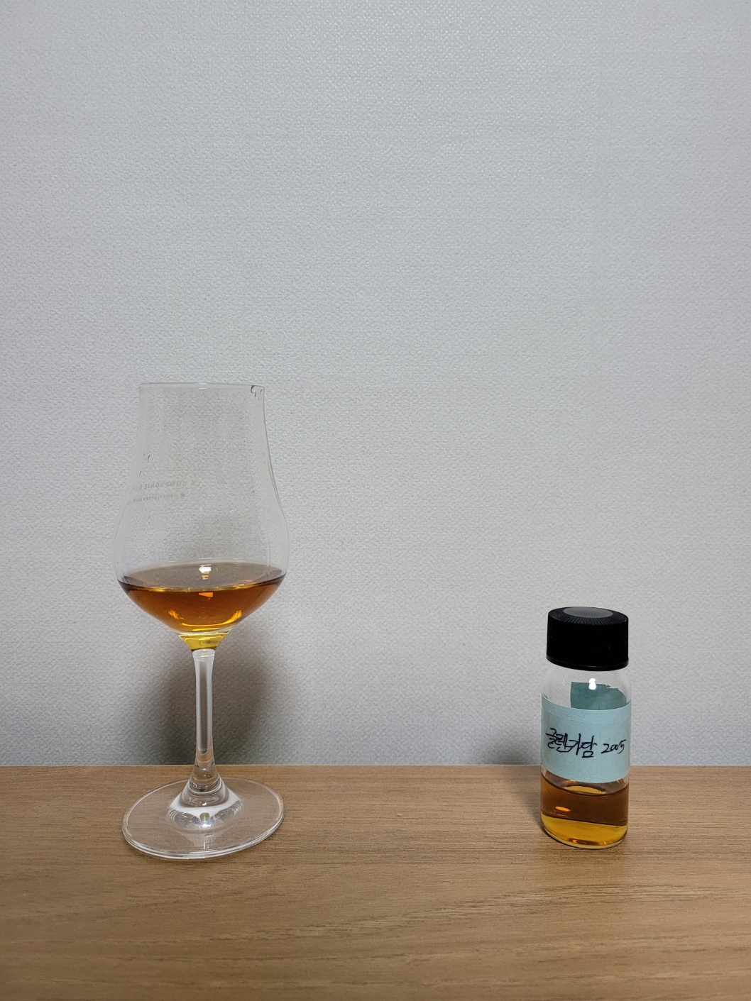 향: 알코올이 제법 치대며 타기 직전에 늘어붙기 시작한 캐러멜 냄새가 매우 지배적이다. 하지만 이것이 화독내로까지 이어지지는 않으며, 이따금 플라스틱 녹은 냄새가 잡힌다. 뒤로는 토피, 스카치 캔디, 누룽지 사탕, 분쇄된 커피원두, 노골적인 황내음(Sulfur), 황설탕 시럽으로 코팅한 피칸 또는 호두정과, 말랑한 상태의 호박엿, 곶감 등의 단향이 무척 단조롭게 이어진다. 마치 캐스크가 스피릿 캐릭터를 완전히 잠식한 듯 보이기도 한다.