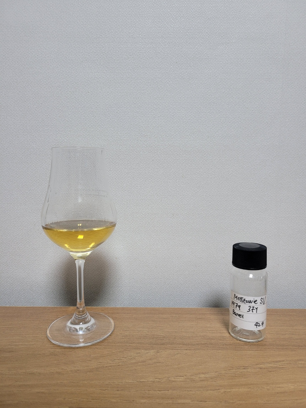 목 넘김 및 여운: 부드러운 목 넘김이지만 산뜻하지는 않다. 바닐라, 시나몬 파우더, 물에 불린 나무젓가락, 솔잎, 녹차의 뉘앙스가 비강을 살짝 메운다. 이후 가볍게 구워낸 채소의 훈연향, 알로에 음료, 애플민트, 가솔린 뉘앙스가 가늘고 길게 이어진다. 혀에는 가볍게 우려낸 차에서 오는 탄닌감과 잔잔한 산미가 내려앉고 귤락의 쌉쌀함이 오랫동안 잔존한다.