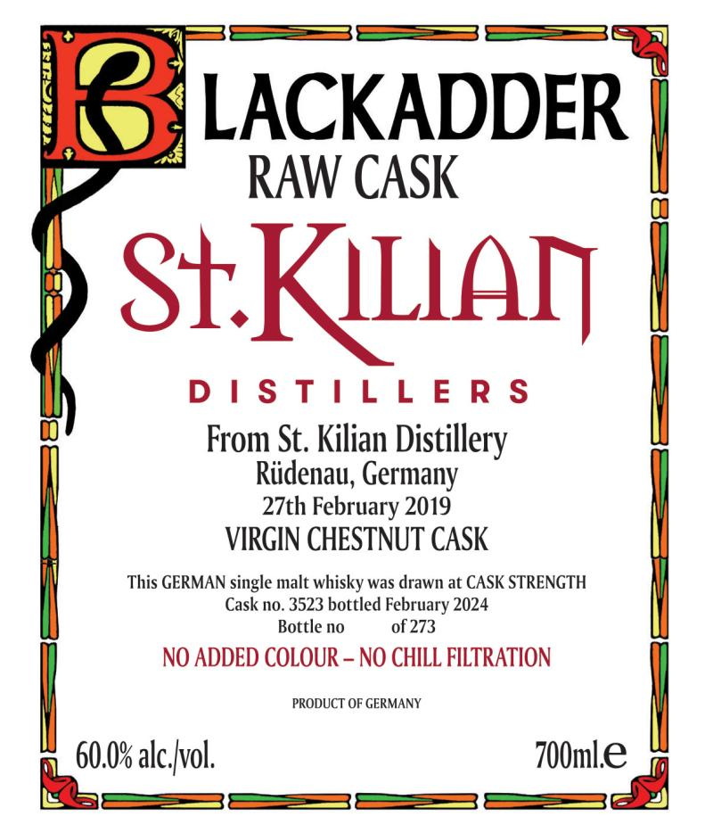 St. Kilian 2019 4 Years Single Cask #3523 Blackadder Raw Cask