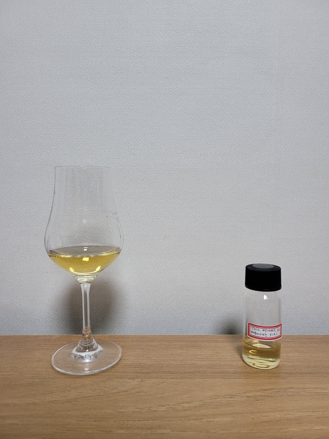 목 넘김 및 여운: 도수 대비 보다 자극적인 목 넘김이다. 가루약, 라임주스, 데친 양배추, 해충 구제용 소독약의 크레오졸 뉘앙스, 지독한 약품 냄새, 하얗게 탄 재의 뉘앙스가 비강을 가득 메운다. 이후 가라앉은 뒤에는 하얀 생강과자와 박하사탕의 향이 가늘고 길게 이어진다. 혀에는 라임의 씁쓸한 산미와 귤락의 쌉쌀함 그리고 백후추가 노골적으로 자글거린다. 이후 백미를 오래 씹으면 배어 나오는 은은한 단맛과 채수의 감칠맛이 잔존한다.