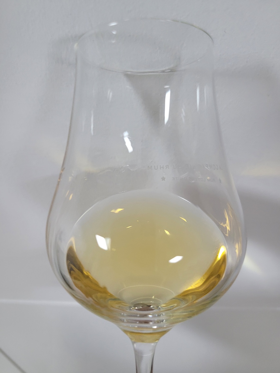 색: 노란빛을 띠며 레그는 잔 중간에 맺혀 매우 천천히 떨어진다.