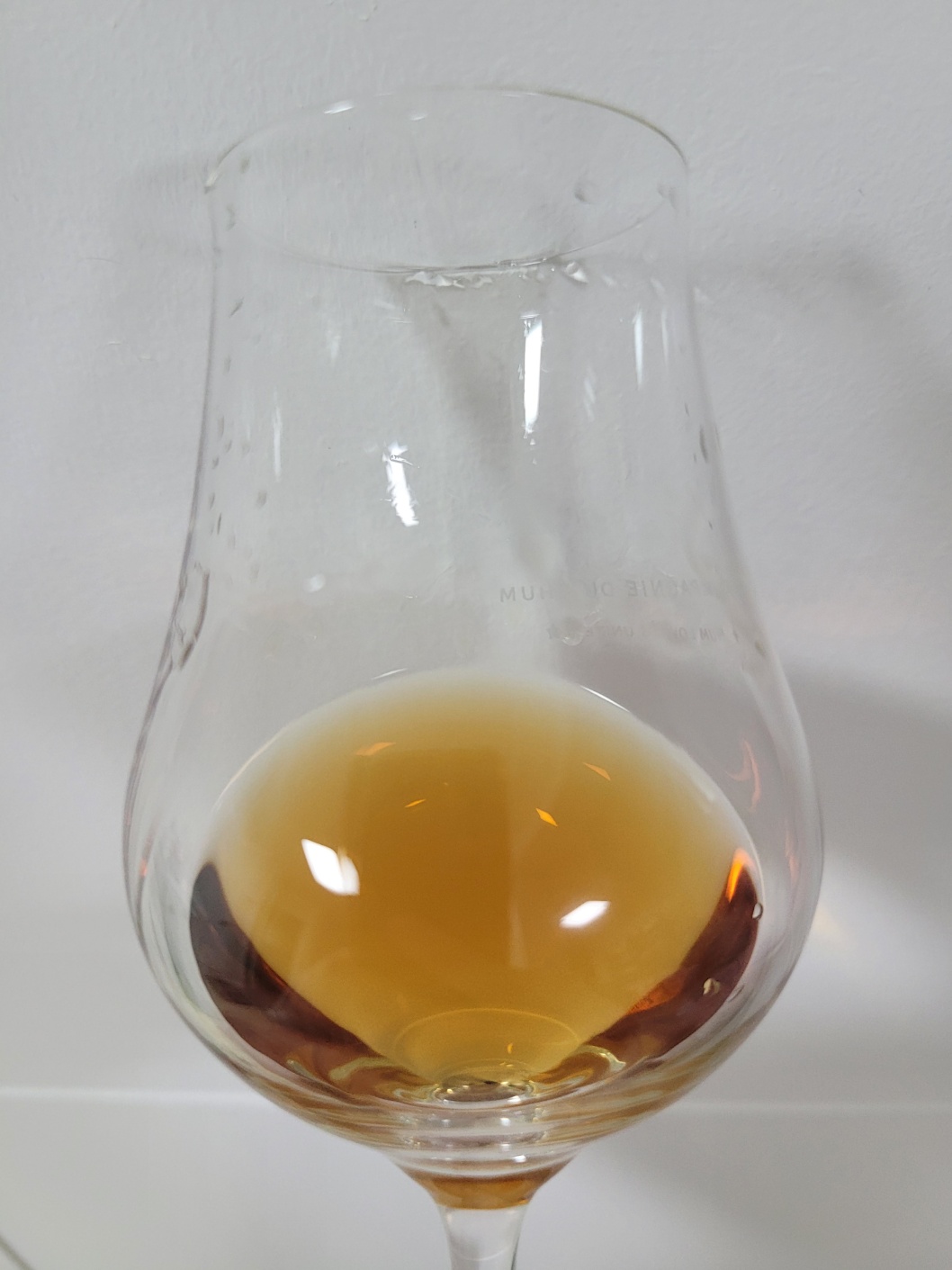 목 넘김 및 여운: 도수에 비해 살짝 자극적인 목 넘김이다. 말린 정향, 흑후추, 그을린 계피스틱의 훈연향, 히비스커스티, 검붉은 베리류 등이 비강을 가득 메운다. 이후 마른 허브와 담뱃잎 따위가 건조하게 그리고 길게 이어진다. 혀에는 시큼한 산미와 향신료의 알싸함이 진득하게 훑고 지나간 뒤에는 미약한 단맛과 카카오닙스의 씁쓸함 그리고 적포도 껍질의 탄닌으로 드라이하게 마무리된다.