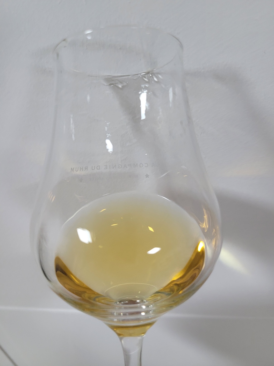 색: 금빛을 띠며 레그는 잔 중간에 맺혀 매우 천천히 떨어진다.