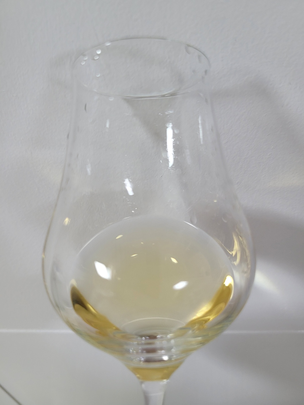 목 넘김 및 여운: 자극적인 목 넘김이다. 에스테리한 뉘앙스와 함께 아세톤이 비강에서 두둥실 떠다니다가 휘발되고는 아오리사과, 머스캣, 솔잎, 생바질, 스피아민트 따위가 두껍고 길게 이어진다. 혀에는 가염버터의 감칠맛과 은은한 짠맛, 귤락의 쌉쌀함, 백후추, 백미를 오래 씹으면 배어 나오는 단맛이 미약하게 남는다.