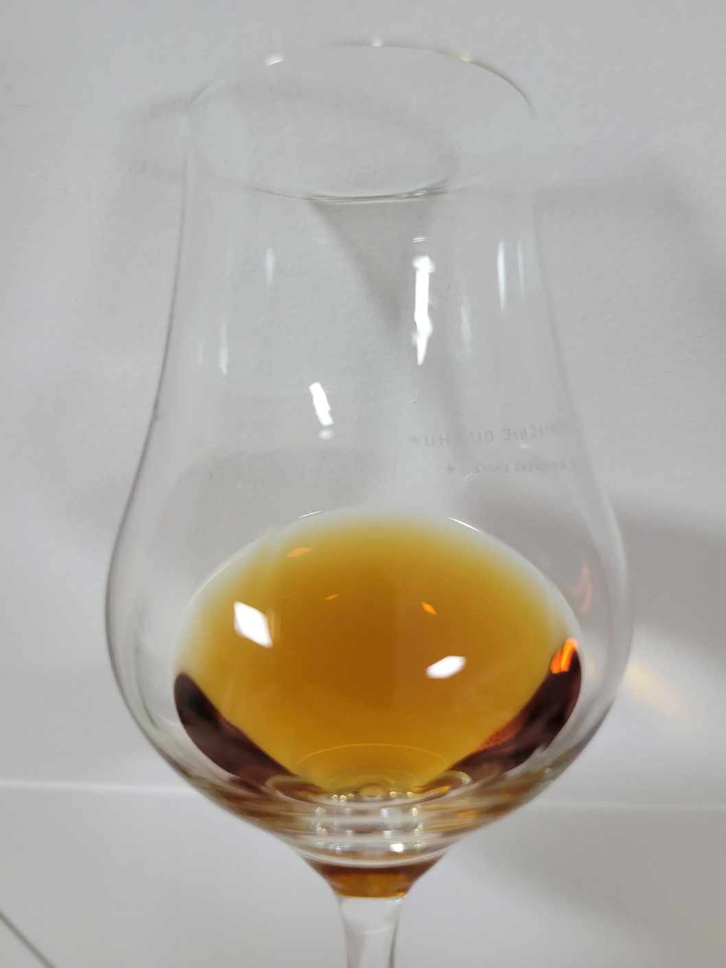 목 넘김 및 여운: 살짝 자극적인 목 넘김이다. 다크초콜릿, 에스프레소, 그을은 캐러멜과 미세한 탄내, 말린 정향, 흑후추, 오랑제뜨, 구운 아몬드의 향이 비강을 가득 메운다. 이후 마라스키노 체리, 블랙체리, 말린 타임과 담뱃잎의 뉘앙스가 두껍고 길게 이어진다. 혀에는 잡다한 견과류 분태를 섞은 밀크초콜릿의 고소한 단맛, 오렌지의 산미와 귤락의 쌉싸래함, 버섯의 감칠맛과 부드러운 탄닌에서 오는 약간의 떫은 느낌이 잔존한다.