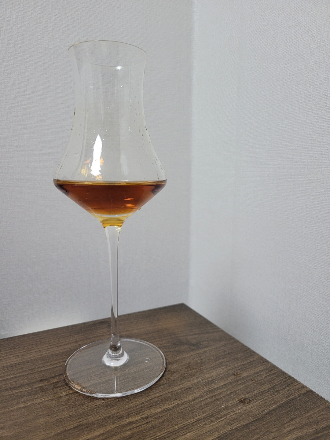색: 명도와 채도 모두 높다. 옅은 마호가니 색에 황금빛이 드문드문 스며들어있다. 레그는 무척이나 진하며, 잔 중간에 맺힌 방울들이 매우 천천히 떨어진다.
