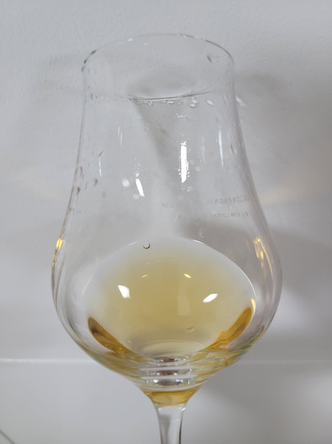 맛: 크리미한 질감에 약 ~ 중간 정도의 바디감이다. 파인애플 크림, 바나나 퓌레, 물렁해진 백도복숭아, 맑은 느낌의 사과필링의 풍미가 느껴진다. 산미가 올라오기는 하나, 시큼함보다는 레몬 커스터드 정도의 눅진한 느낌이 있다. 오래 머금으면 이 눅진한 느낌이 단맛에 의해 더욱 증폭되면서 우유캐러멜, 액상 요구르트, 식물성 생크림을 떠올리게 한다. 높은 도수에도 알코올 튀는 느낌이 없다. 균형감이 좋다고는 볼 수 없지만, 향에 비해 상당히 정갈한 느낌이다.