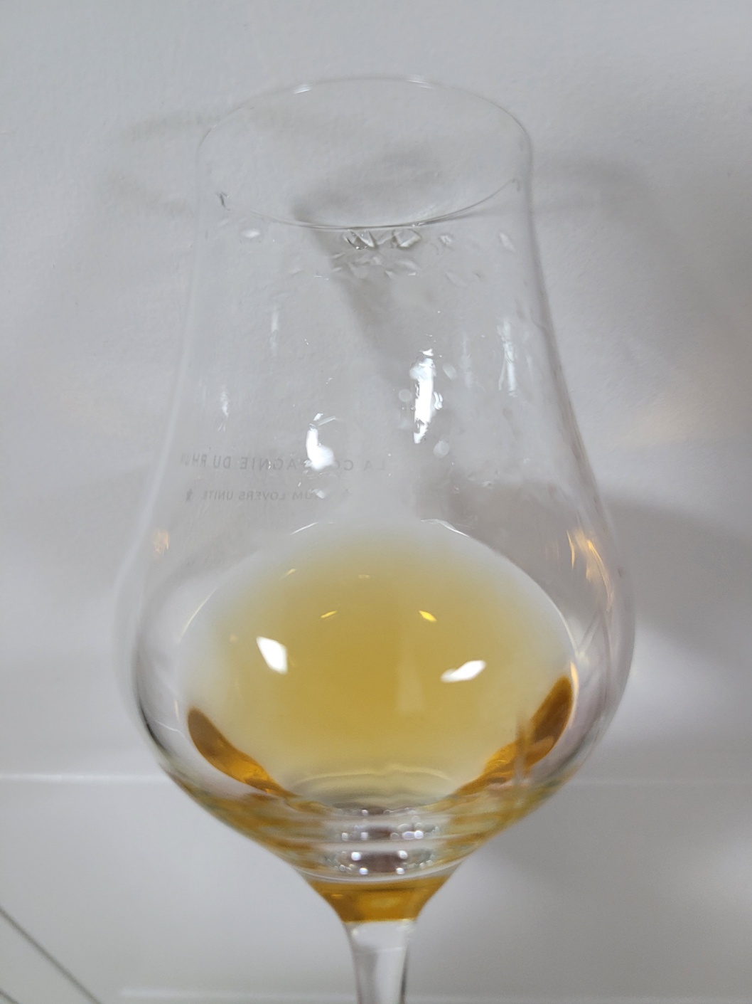 색: 금빛을 띠며 레그는 잔 중간에 맺혀 매우 천천히 떨어진다.
