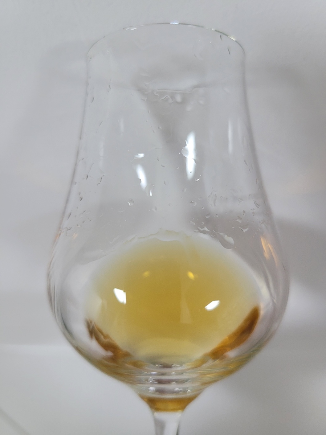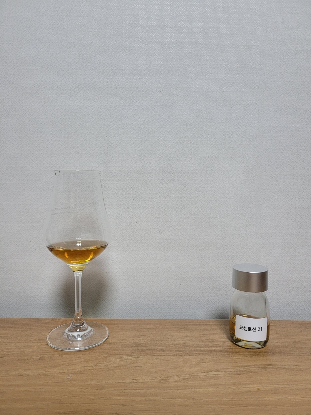 목 넘김 및 여운: 부드러운 목 넘김이다. 진저 파우더, 시나몬 파우더, 송홧가루, 아몬드가루 등 비강이 파우더리한 느낌으로 가득 찬다. 이후 스코틀랜드에서 생산하는 호밀 기반의 그레인 위스키의 맵싸함과 건초 풋내가 가늘게 이어진다. 혀에는 단맛과 산미가 살짝 올라왔다가 빠르게 흩어지고는 떫은 감과 뿌리채소의 쓴맛이 오랫동안 남는다.