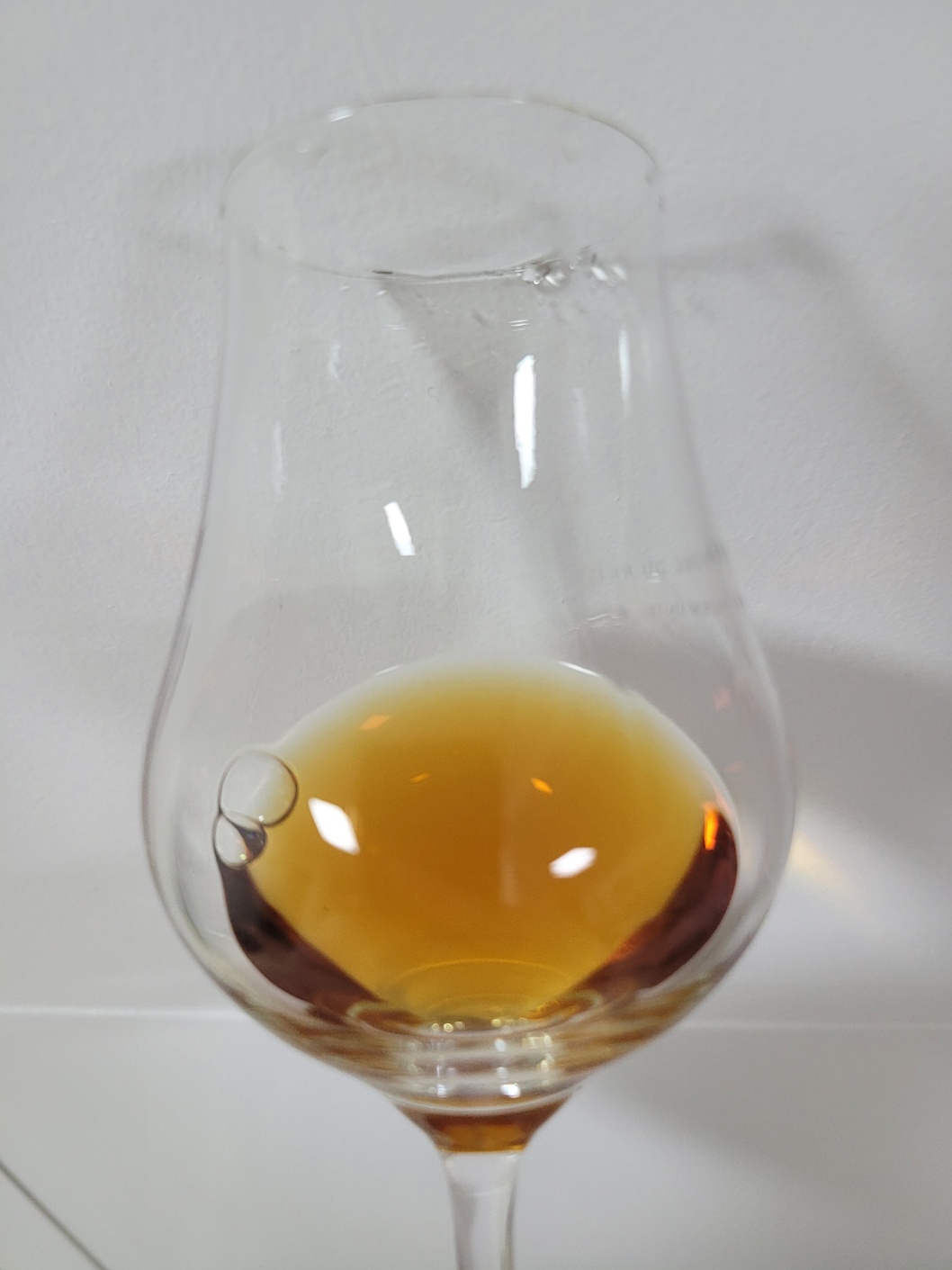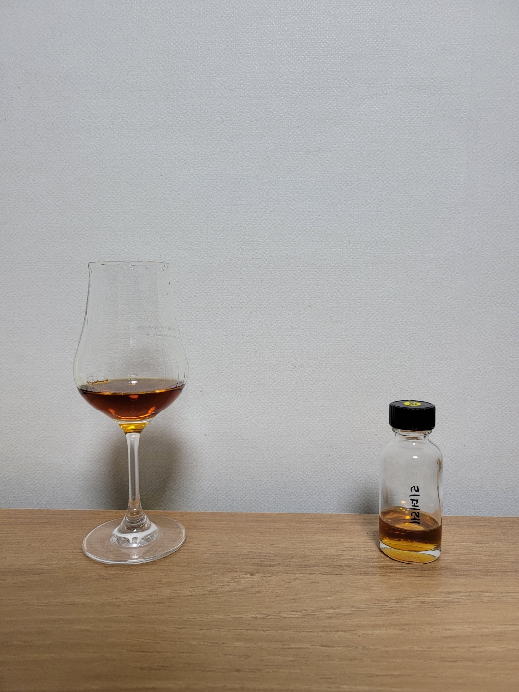 목 넘김 및 여운: 살짝 자극적인 목 넘김이다. 두꺼운 화독내와 함께 화전에서 오는 건초 태운내, 약간의 매캐함, 검은 베리류로 만든 잼의 뉘앙스, 말린 정향, 곱게 간 흑후추, 구두약 따위가 비강을 가득 메운다. 이후 감귤류에서 오는 시트러스와 파우더리한 느낌이 뒤섞이면서 이어지다가 툭 끊긴다. 혀에는 쓰고, 떫고, 시큼한 다소 원초적인 느낌이 든다. 단맛은 없다시피 하며 마른 허브럽드를 머금어 수분을 계속해서 앗아가는 듯하다.