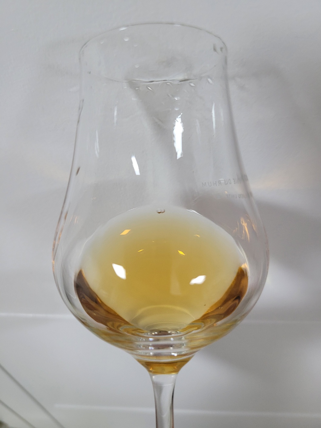 향: 알코올이 제법 치대며, 아세톤 뉘앙스가 있다. 여물 또는 건초 풋내, 캐러멜, 메가톤 아이스크림, 호지차 아이스크림, 마테차, 강낭콩 기반의 백앙금, 과숙된 배, 캔털루프멜론, 황도복숭아 그리고 꼬릿한 황치즈쿠키의 향이 올라온다. 프렌치 바닐라를 떠올릴 정도로 두터운 바닐라 뉘앙스가 매력적이긴 하지만, 살짝 발효된 듯한 쉰 냄새와 효모취 그리고 옥수수가루의 향이 거슬린다. 단조로우면서 볼륨도 다소 홀쭉한 편이다.