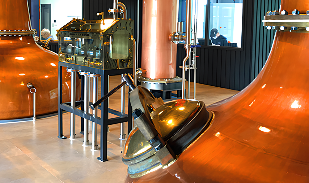 증류소 내부의 스틸룸에는 구리로 이루어진 한 쌍의 팟 스틸이 있다. 일반적인 스트레이트형 워시 스틸과 스피릿 스틸 모두 환류구(Reflux Ball)가 없으며, 응축기와 연결되어 있는 라인암(Lyne Arm)은 완만한 하향식을 띠고 있다. 이는 심플한 형상의 증류기를 통해 많은 실험을 수행하고, 다채로운 맛을 얻기 위한 것에 있다. 이중 증류 및 미들컷을 통해 알코올 도수 약 60 ~ 63%의 뉴 메이크 스피릿을 생산한다. 연간 약 12만 리터의 순수 알코올(LPA)을 생산할 수 있다.