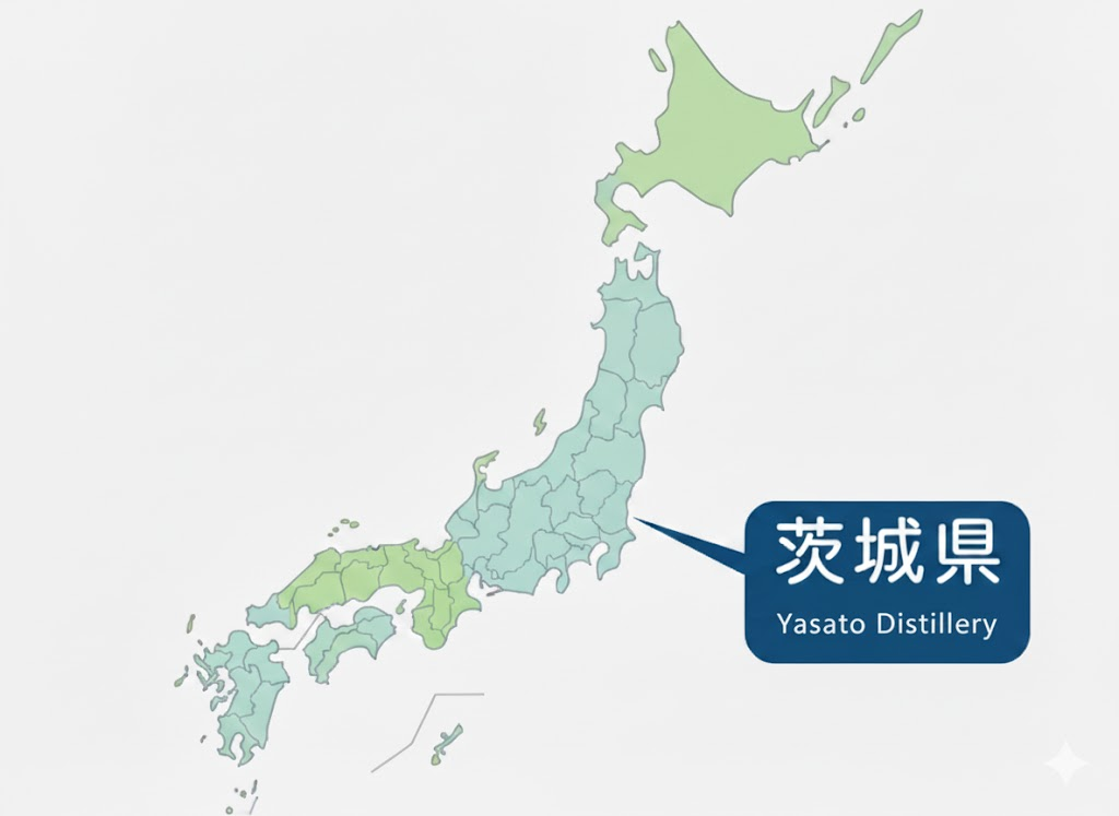현재 이바라키현에 해당하는 과거 히타치노쿠니 지역은 오랫동안 바다와 산에서 나는 산물이 풍부한 땅으로 알려졌었다. 그중에서도 쓰쿠바산에서 흘러드는 풍부한 수자원으로 주변 지역의 사케 양조장들이 많은 혜택을 입었다. 야사토 증류소는 지하 약 200미터 아래에 있는 지하수를 주 수원으로 하며, 경도 약 5의 연수에 해당한다.