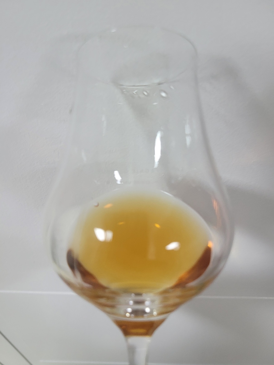 향: 알코올이 강하게 치대며, 다소 순수한 아세톤의 뉘앙스가 잡히기도 한다. 장향까지는 아니더라도 백미소를 연상케 하는 토스티(Toasty)와 밀키함 그리고 꿉꿉함이 있다. 구운밤 또는 농밀한 밤꿀의 향, 반건조 무화과, 밀크커피, 잡다한 곡물이 섞인 밀크초콜릿, 약간의 몰트 쩐내가 있다.