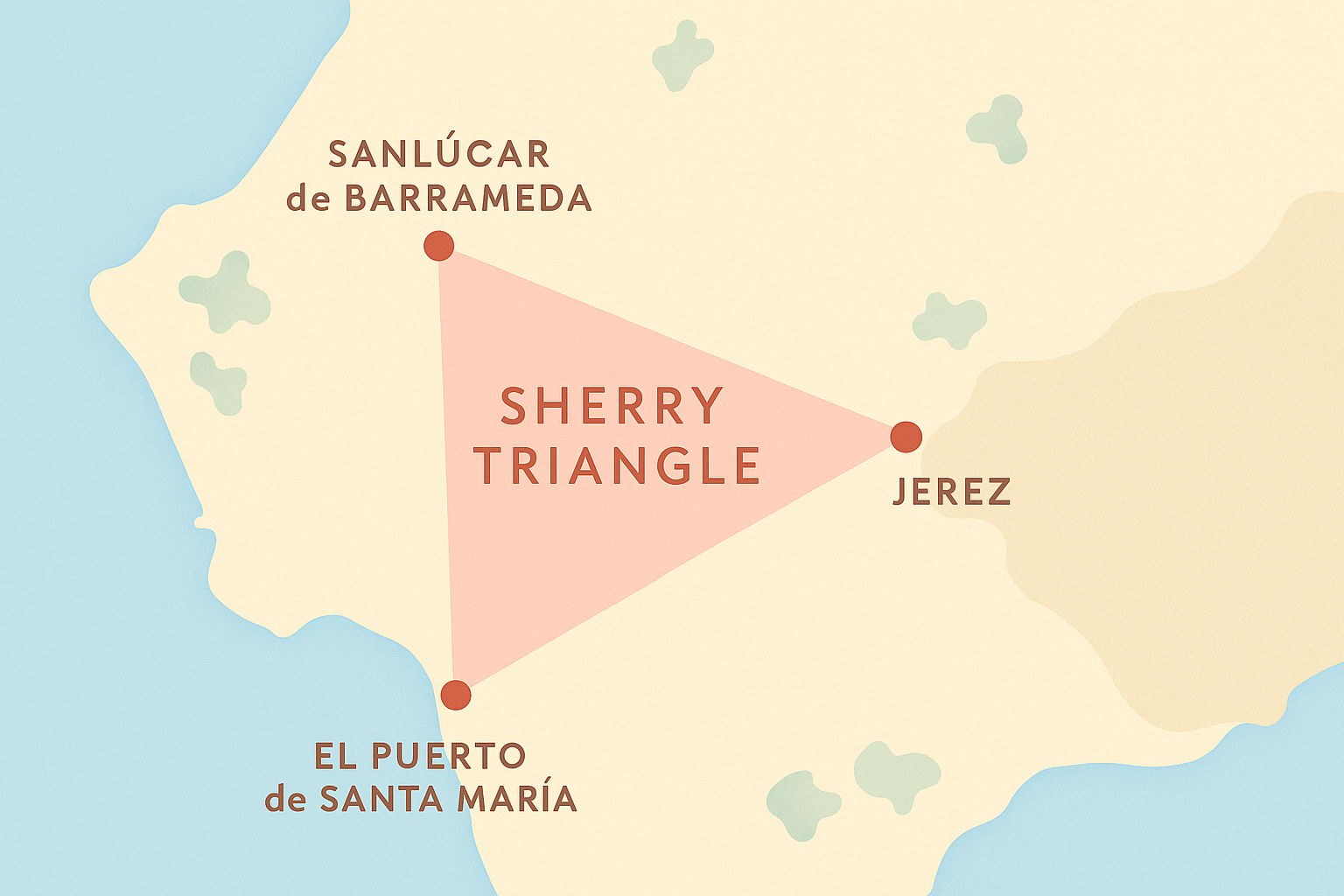 셰리라는 이름은 스페인 남부 안달루시아 지방에서도 소위 셰리 트라이앵글 지역으로 불리는 헤레스 데 라 프론테라와 산루카르 데 바라메다 그리고 엘 푸에르토 데 산타 마리아를 비롯한 인근 6개의 자치구를 포함한다. 이 지역의 토양은 백악질 및 석회암 기반이며, 셰리 와인을 만드는 데 사용되는 전통적인 포도 품종 3가지를 재배하는데 매우 이상적이다. 셰리 와인은 3가지의 주요 범주로 분류되긴 하지만, 그 종류에 따라 최대 10 ~ 11가지로 세분화된다.